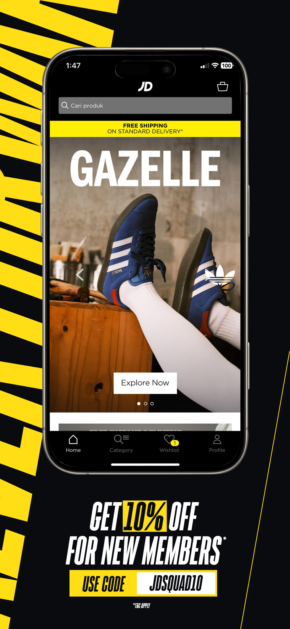 Temukan sepatu sneakers, pakaian olahraga dan streetwear melalui aplikasi JD Sports. Mulai dari koleksi terbaru Nike, adidas, Puma, dan New Balance hingga rilis eksklusif JD, kami menyediakan semua yang Anda butuhkan untuk tetap tampil trendi. Aplikasi JD Sports membawa brand global terpercaya ke dalam genggaman Anda dengan pengalaman belanja yang lancar dan checkout yang aman.
