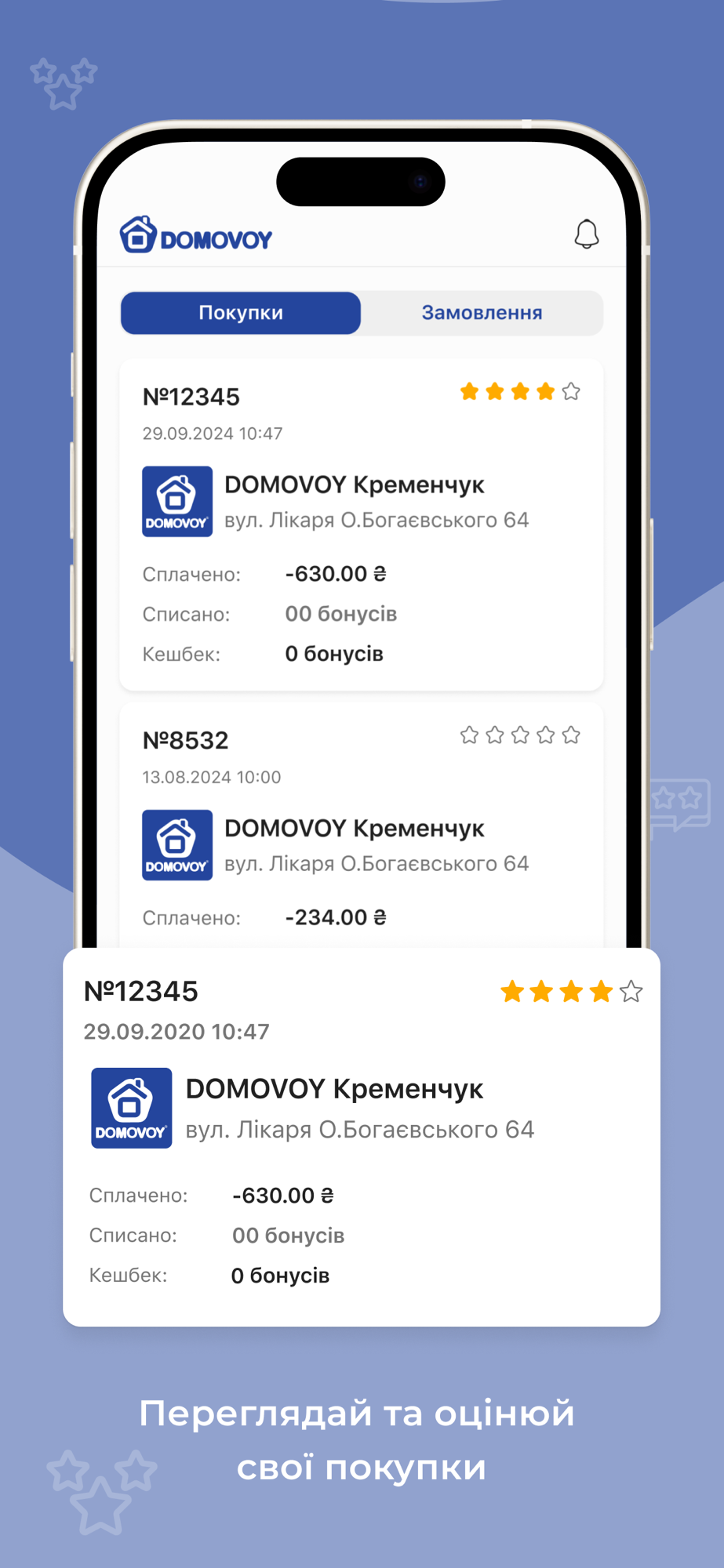 Завантажуючи додаток DOMOVOY, Ви стаєте частиною унікальної програми лояльності.