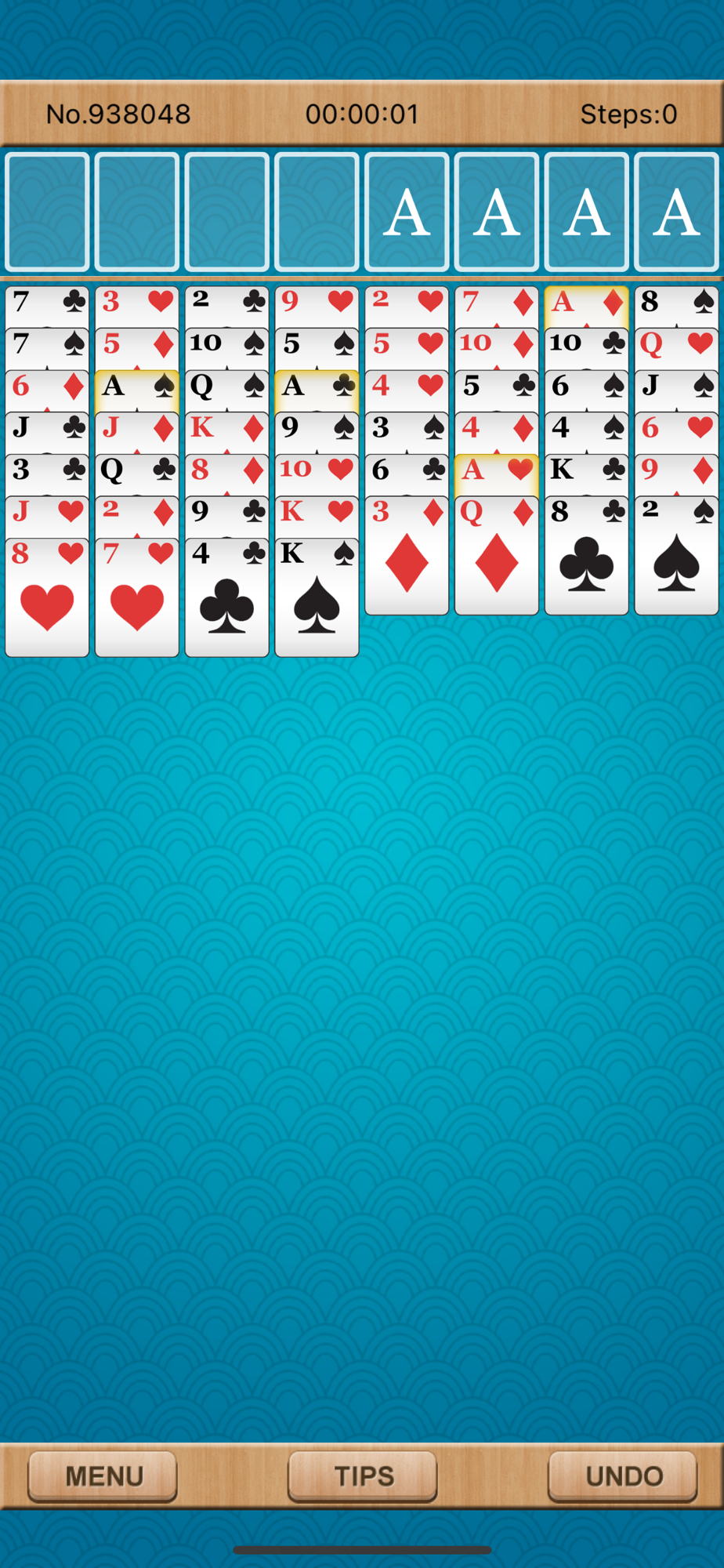 + A card can also be moved to an empty cell (the four slots on the top-right side of the screen) or to a foundation pile. A cell may contain only one card.