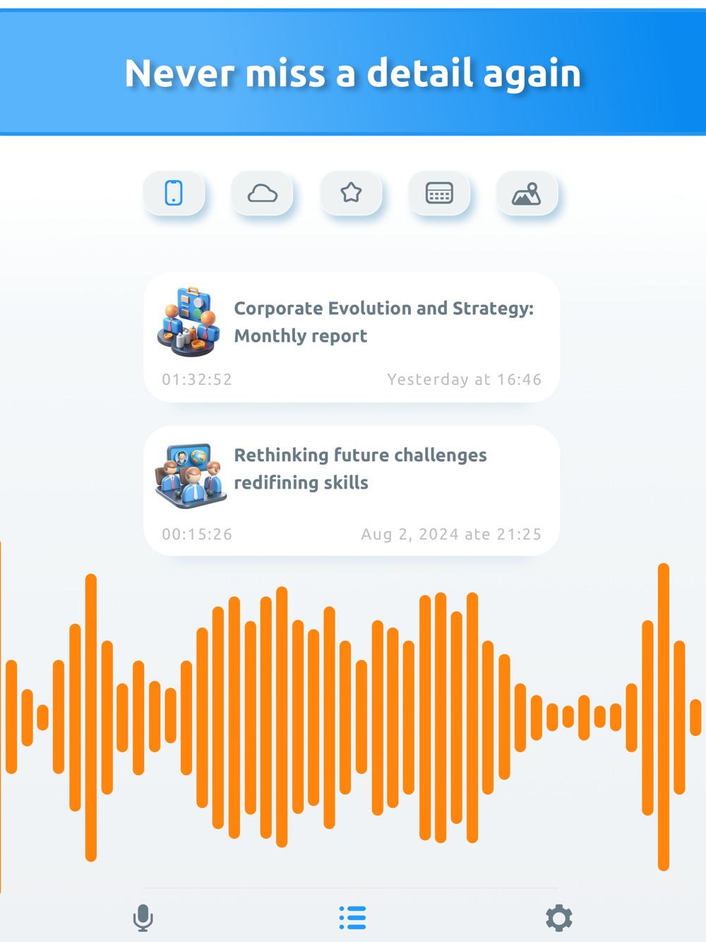 Download AI - Transcribe Speech to Text today and experience a faster, smarter way to handle your audio recordings—whether you're a business executive, doctor, lawyer, financial advisor, teacher, student, journalist, or any other professional in need of precise and trustworthy transcription services! Don't be an Otter. AI Transcribe can save you countless hours by delivering fast and accurate transcriptions.