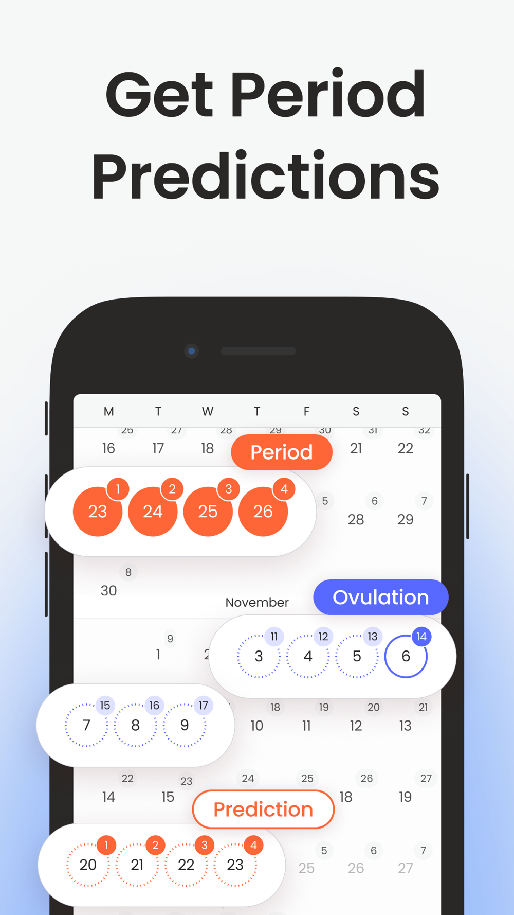 Get timely reminders about your upcoming period, ovulation days, and more. Never miss an important moment in your cycle again with custom alerts that keep you informed.