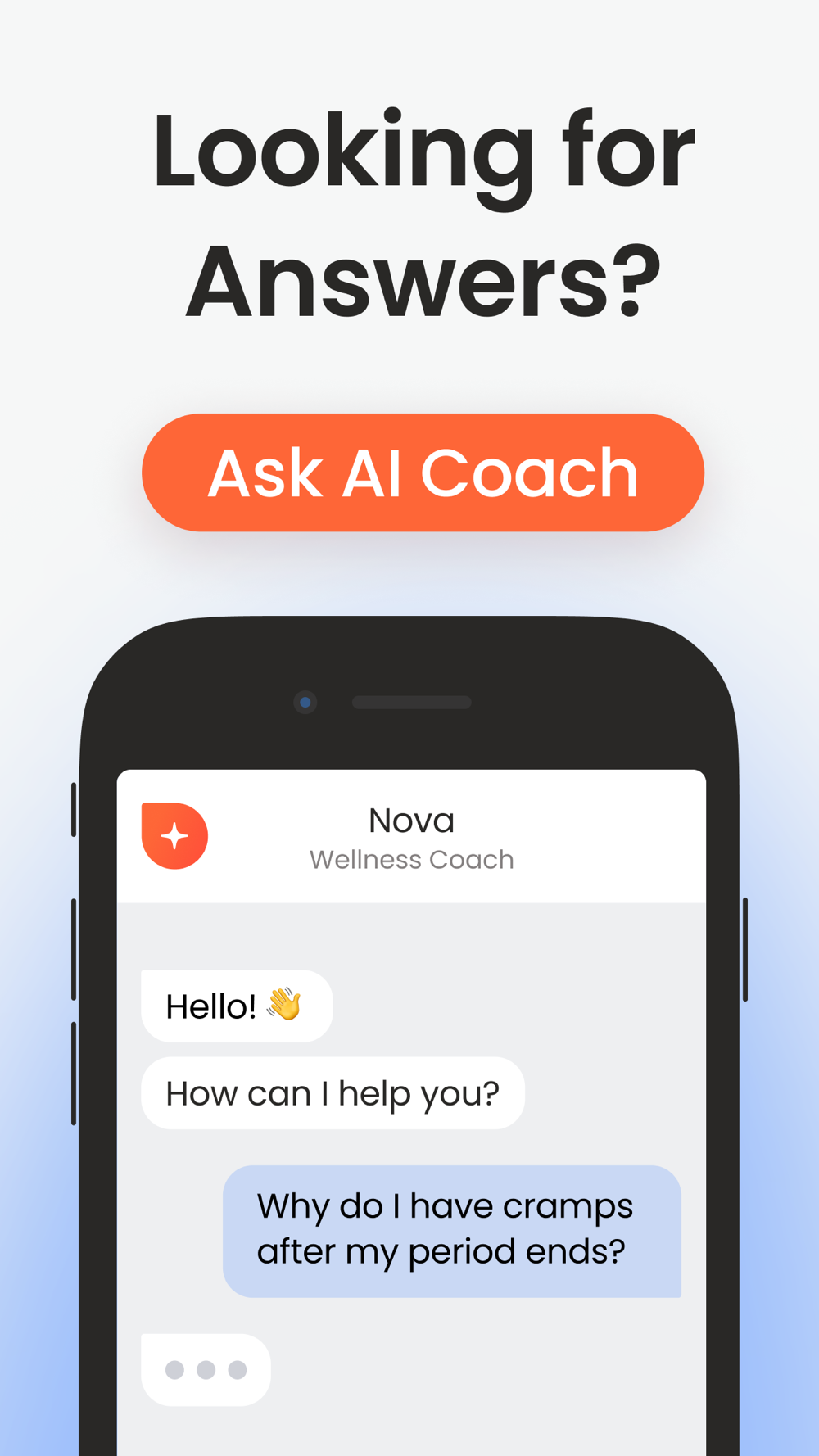Need answers about your cycle, health tips, or advice? Our in-app AI chat assistant is ready to help with personalized suggestions and insights, available 24/7 to answer your questions.