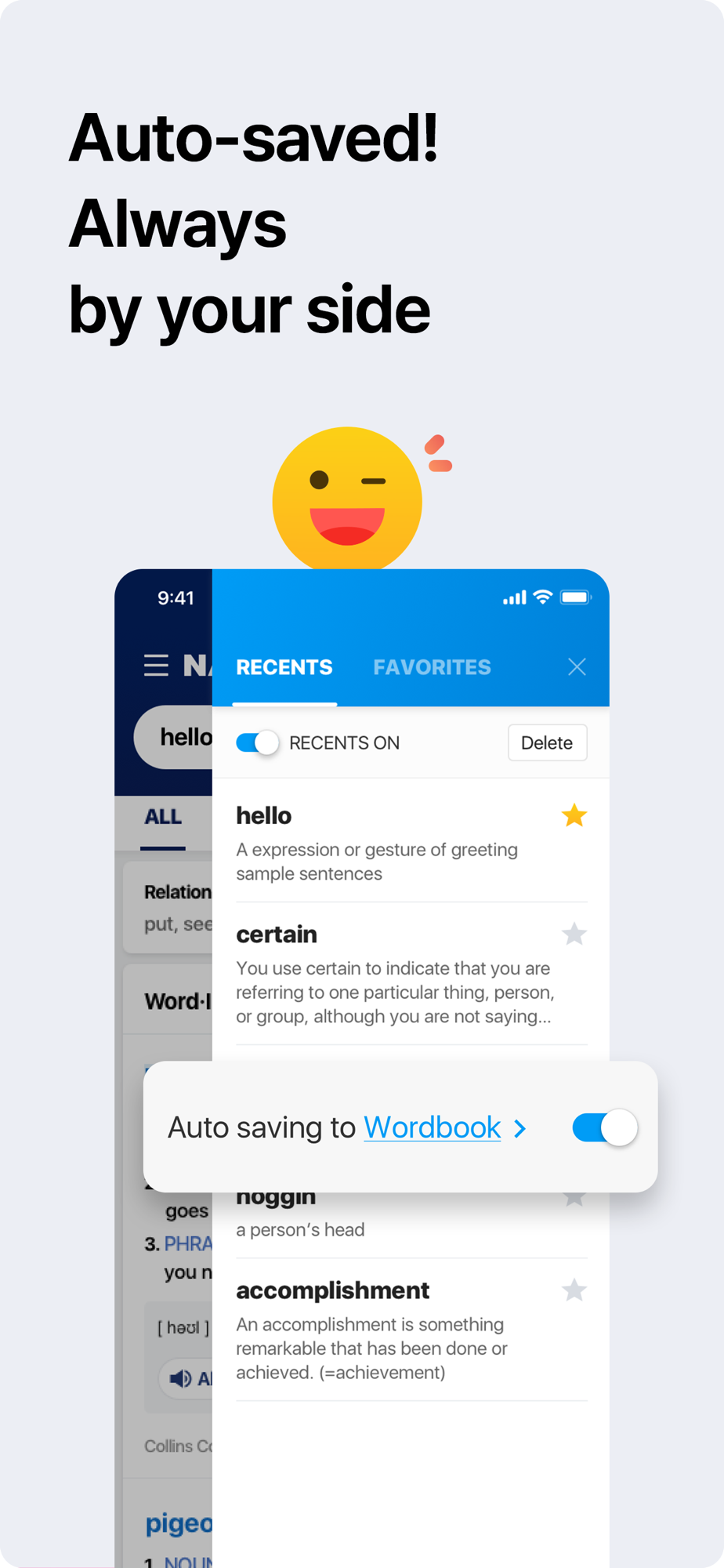 In FAVORITES, you can ‘star’ the word to favorite it and check it out again later.