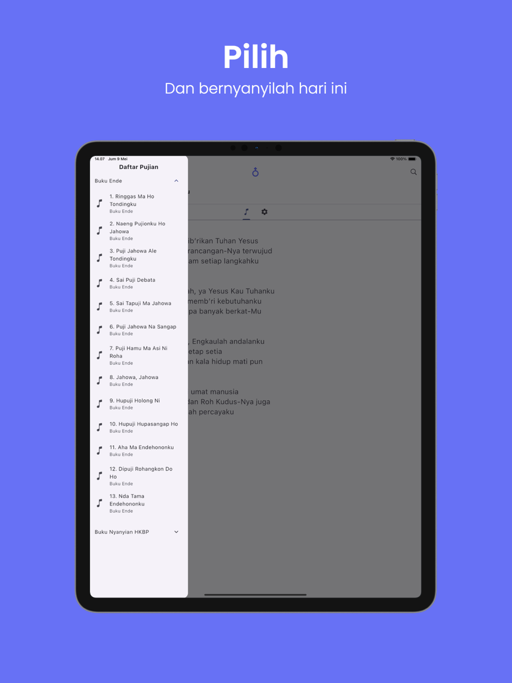 Aplikasi Buku Ende HKBP (Huria Kristen Batak Protestan) berisi pujian dengan bahasa batak untuk umat Kristiani dengan tampilan yang modern.