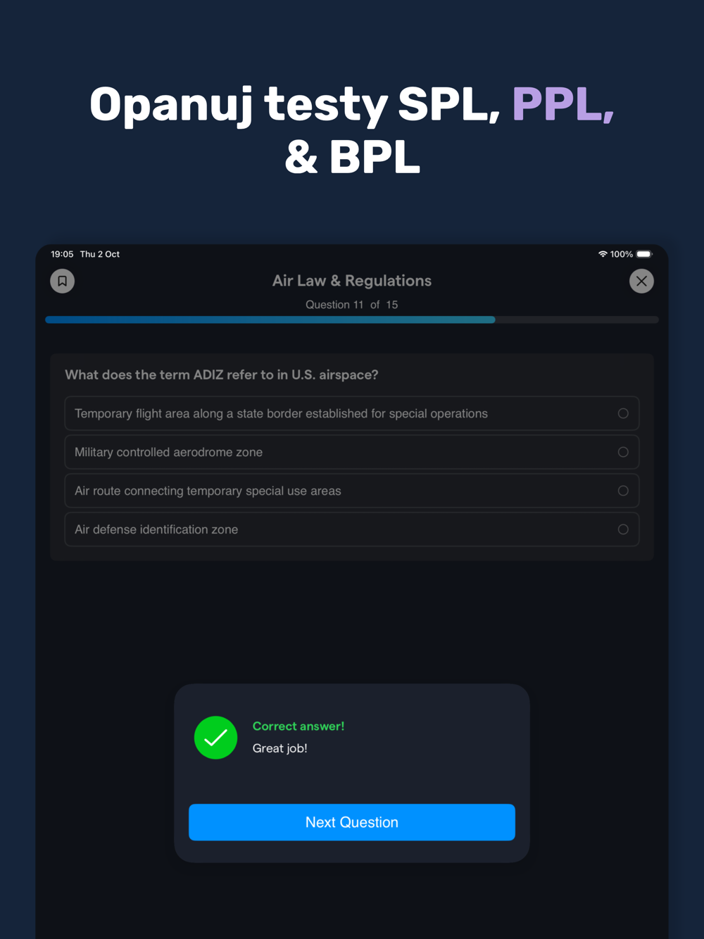 Przygotuj się do egzaminów lotniczych z nowoczesną i wygodną aplikacją wspierającą przyszłych pilotów. Niezależnie od tego, czy uczysz się do licencji SPL, PPL(A), PPL(H), BPL czy w języku angielskim – Egzaminy Lotnicze to Twój niezastąpiony pomocnik.
