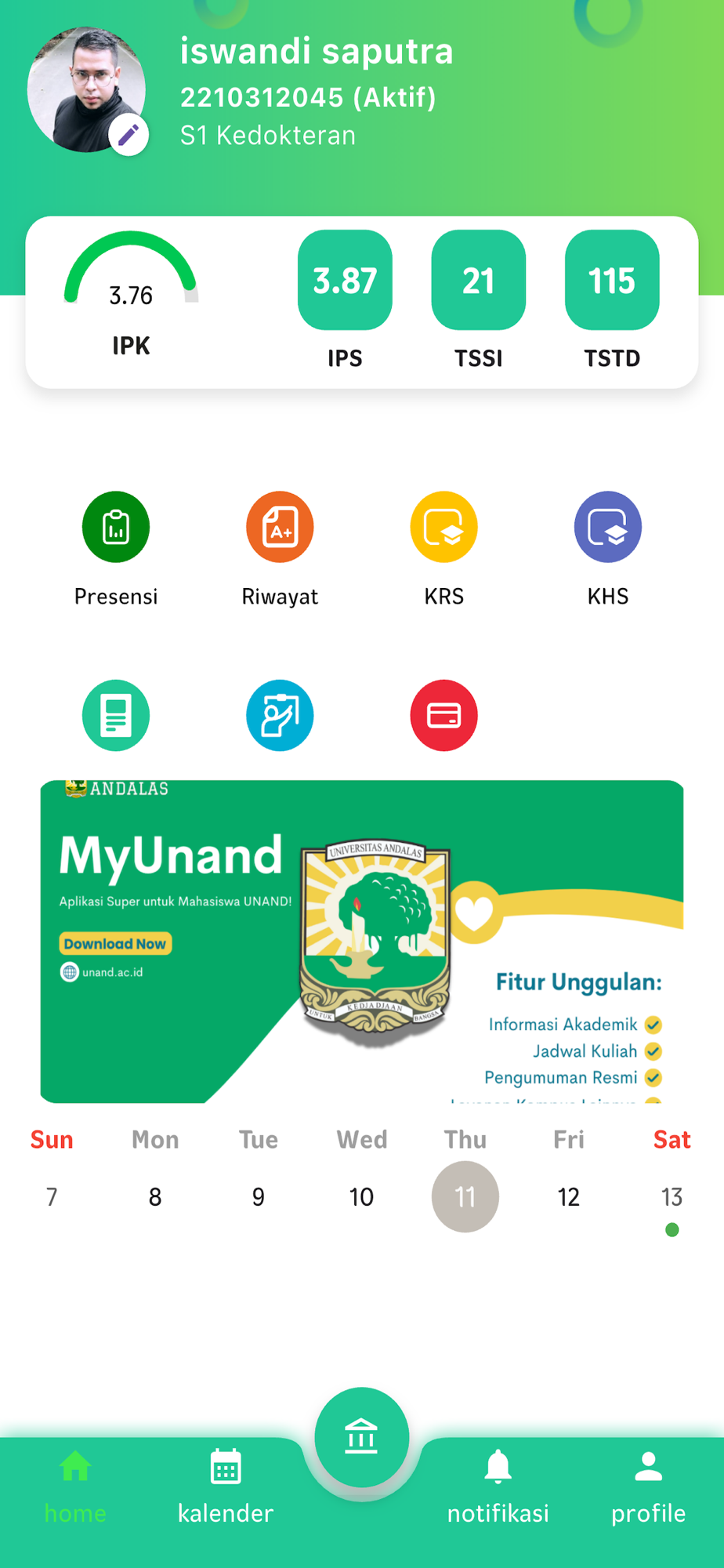 myUNAND Mobile adalah aplikasi resmi Universitas Andalas yang dirancang khusus untuk memberikan kemudahan bagi mahasiswa dalam mengakses berbagai layanan akademik, administratif, dan informasi kampus dalam satu genggaman. Dengan antarmuka yang modern dan fitur yang lengkap, myUNAND Mobile siap menjadi asisten digital terbaik bagi seluruh mahasiswa UNAND