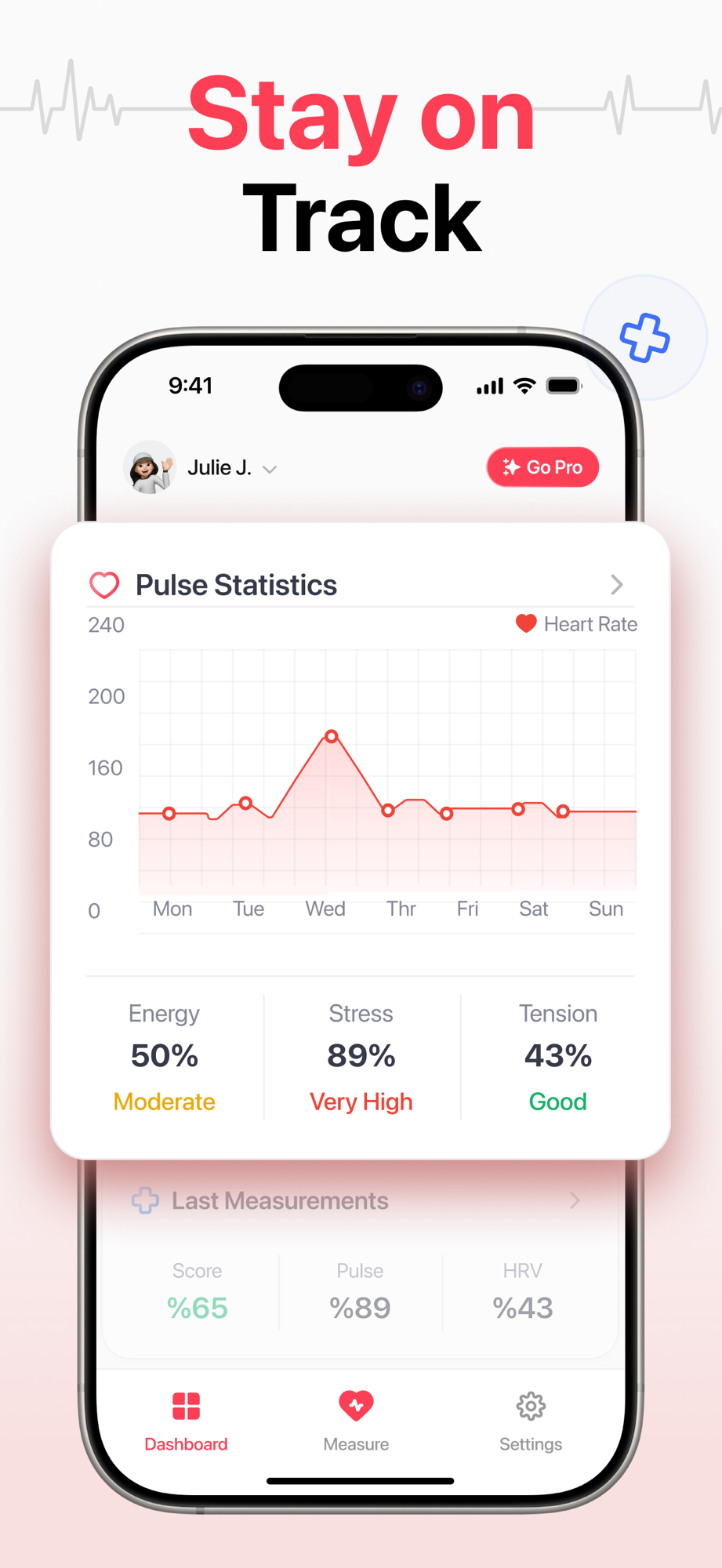 With Heart Beat, tracking your heart rate, stress level and overall wellness becomes part of your daily routine. Whether you're preparing for a workout, cooling down, or simply curious about your current stress level, Heart Beat is here to help.