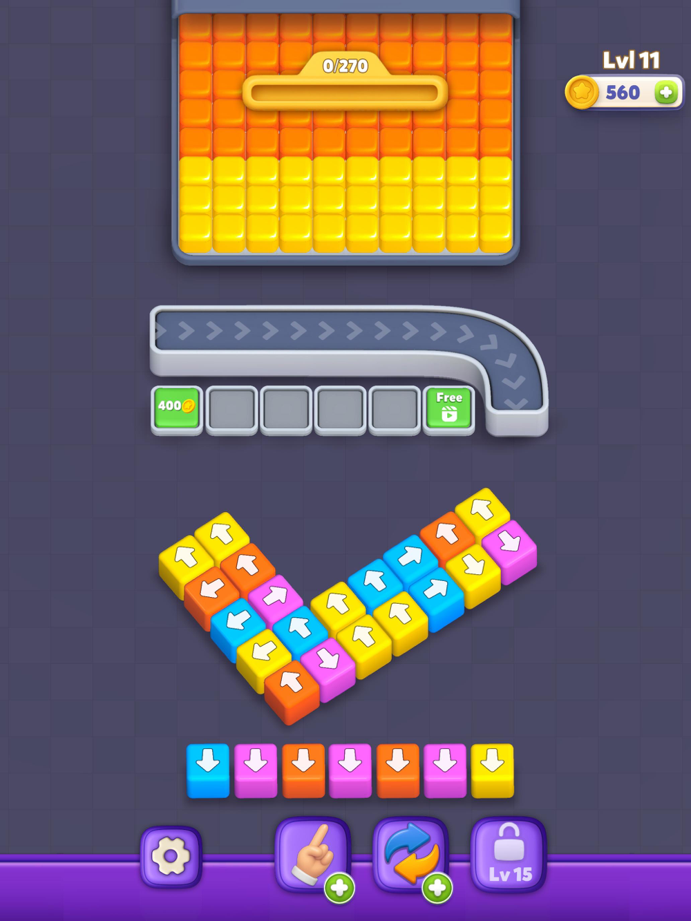 To activate and unblock the paths of colorful blocks with directional arrows, tap. After being set free, they proceed to the conveyor belt and shoot at blocks of the same color. They switch to a slot if they run out of ammo or there are no more matching blocks. The slot has a limit, so be careful! You lose if it fills up.