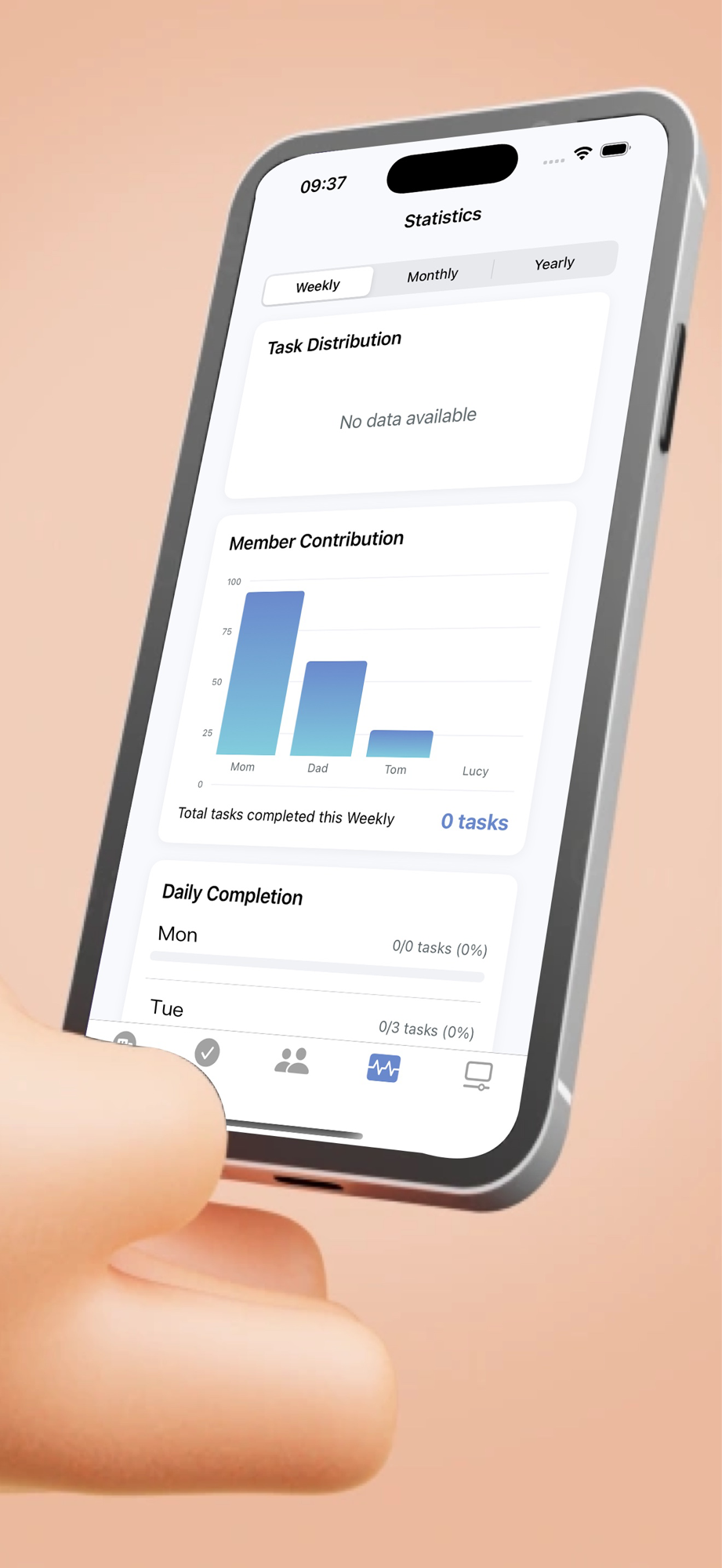 Fungsi analisis statistik intuitif menunjukkan kontribusi, tingkat penyelesaian tugas dan peringkat poin dari setiap anggota keluarga, yang memungkinkan persaingan yang sehat di antara anggota keluarga. Analisis data berkala membantu keluarga memahami apakah keseluruhan alokasi pekerjaan rumah adalah masuk akal, menyesuaikan strategi alokasi tugas secara tepat waktu, dan memastikan distribusi beban pekerjaan rumah yang seimbang.