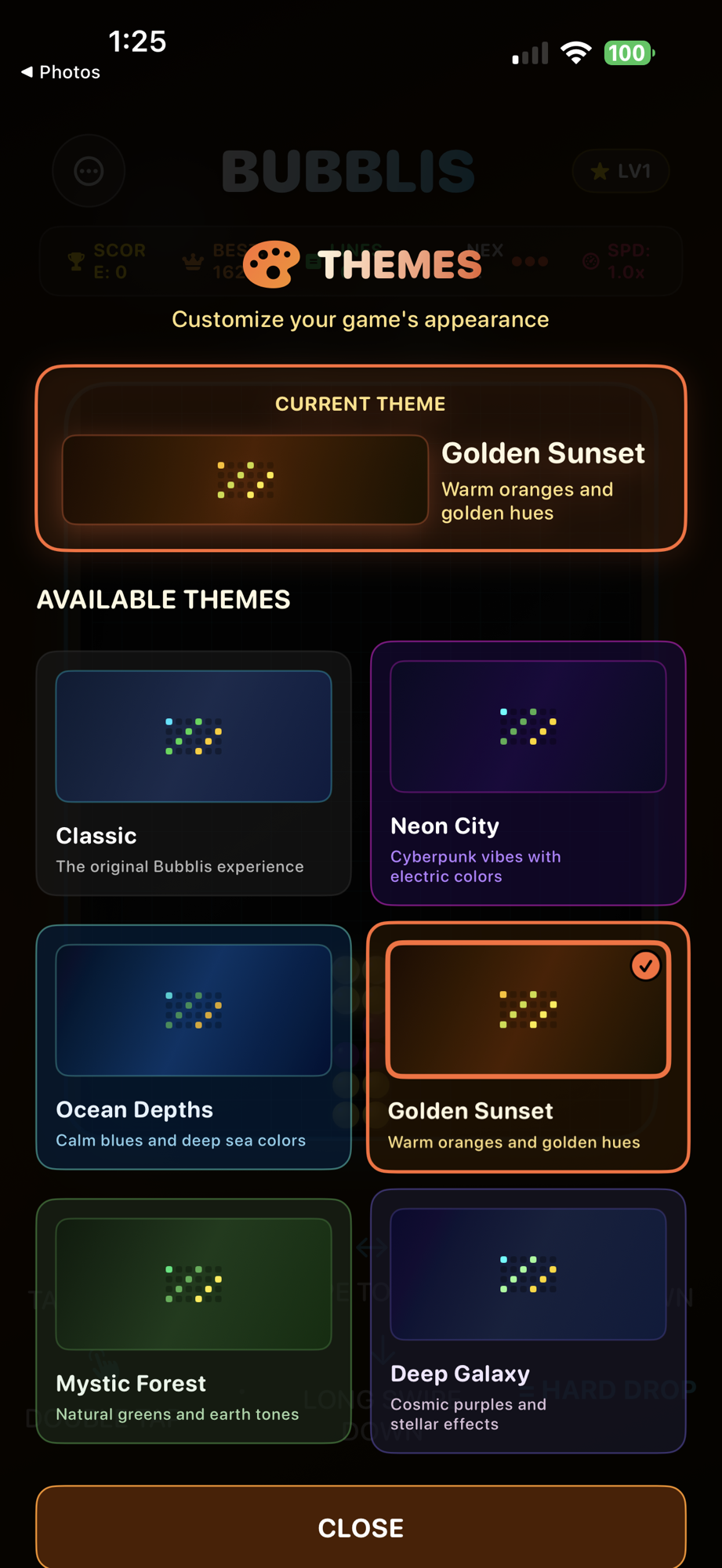 GORGEOUS THEMES: Customize your game! Choose from six stunning themes like Neon City, Ocean Depths, Golden Sunset, and Deep Galaxy to match your mood.
