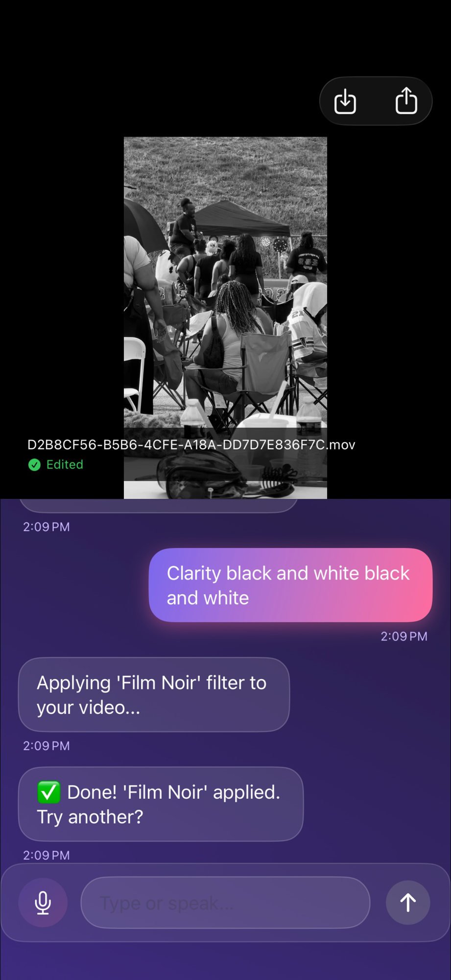 Conversational Editing: Simply chat with our AI. Say "give it a dreamy glow" or "make it look like an 80s movie," and see it happen instantly.