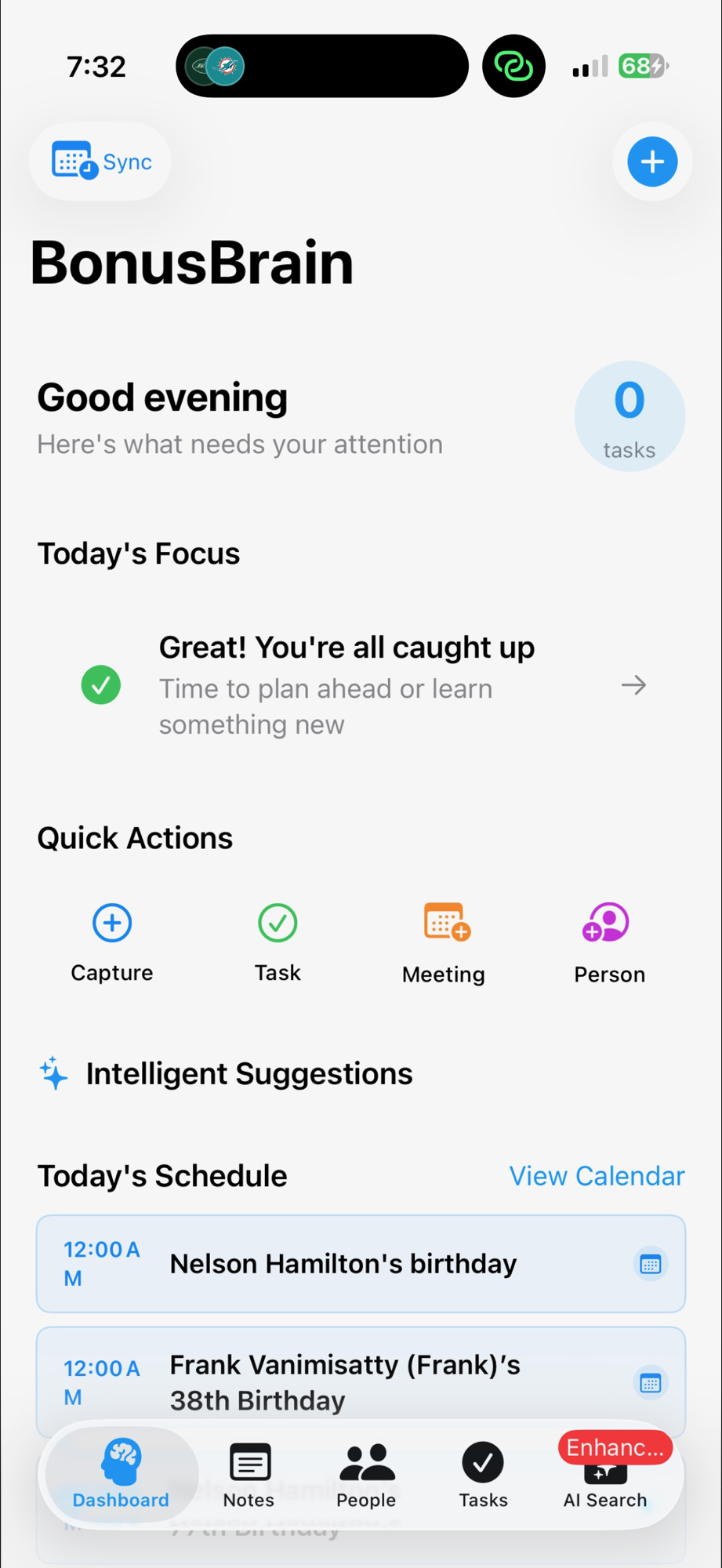 ired of juggling multiple apps for your notes, tasks, calendar, and contacts? Welcome to BonusBrain, your truly integrated second brain, built from the ground up for iOS.