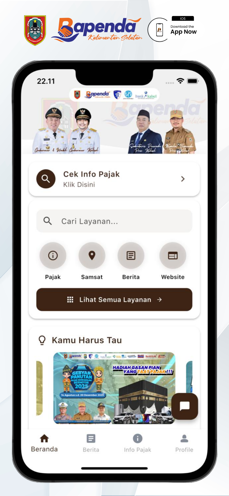 - Mengakses berita dan informasi terkini terkait pelayanan Bapenda Kalsel.