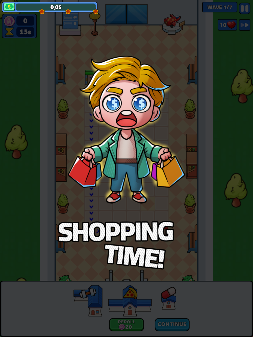 Manage waves of shoppers, upgrade your mall, and use unique mall builds to maximize profits. Drain shoppers of their money before they exit, or take damage. Can your mall thrive in the chaos? Play now and find out!