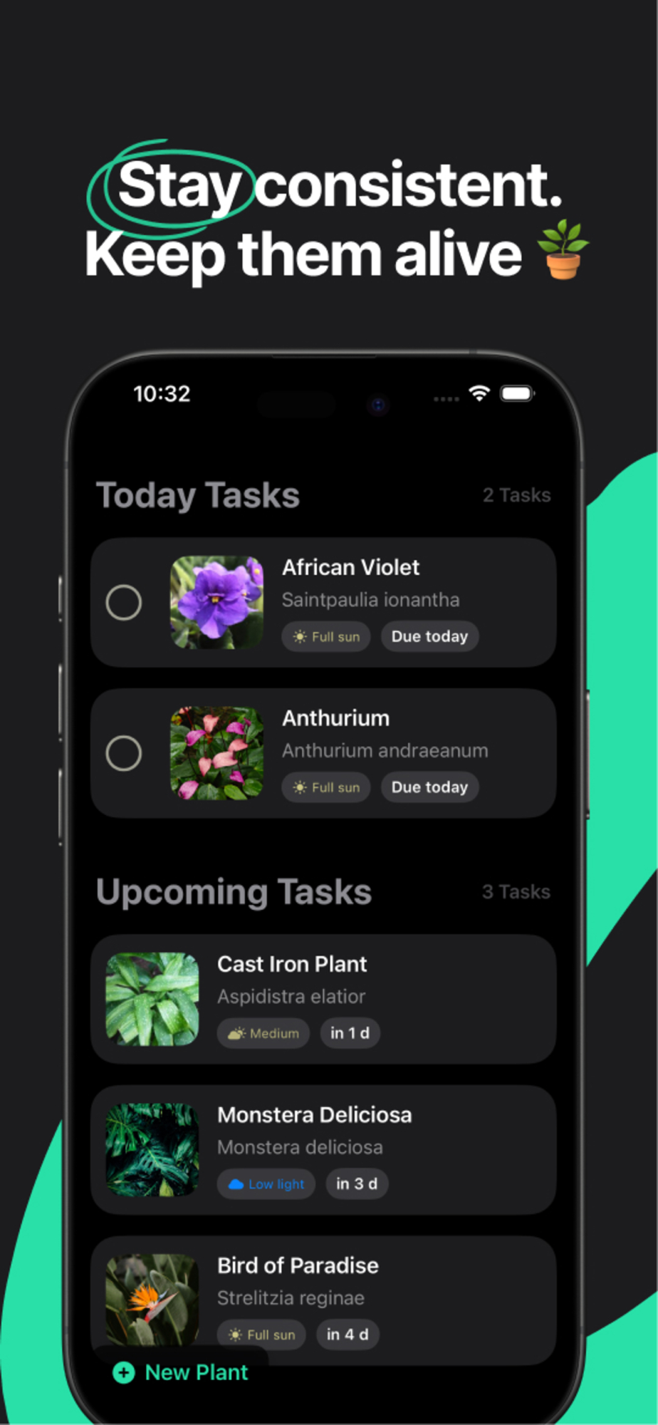 • Stay consistent and keep your plants thriving