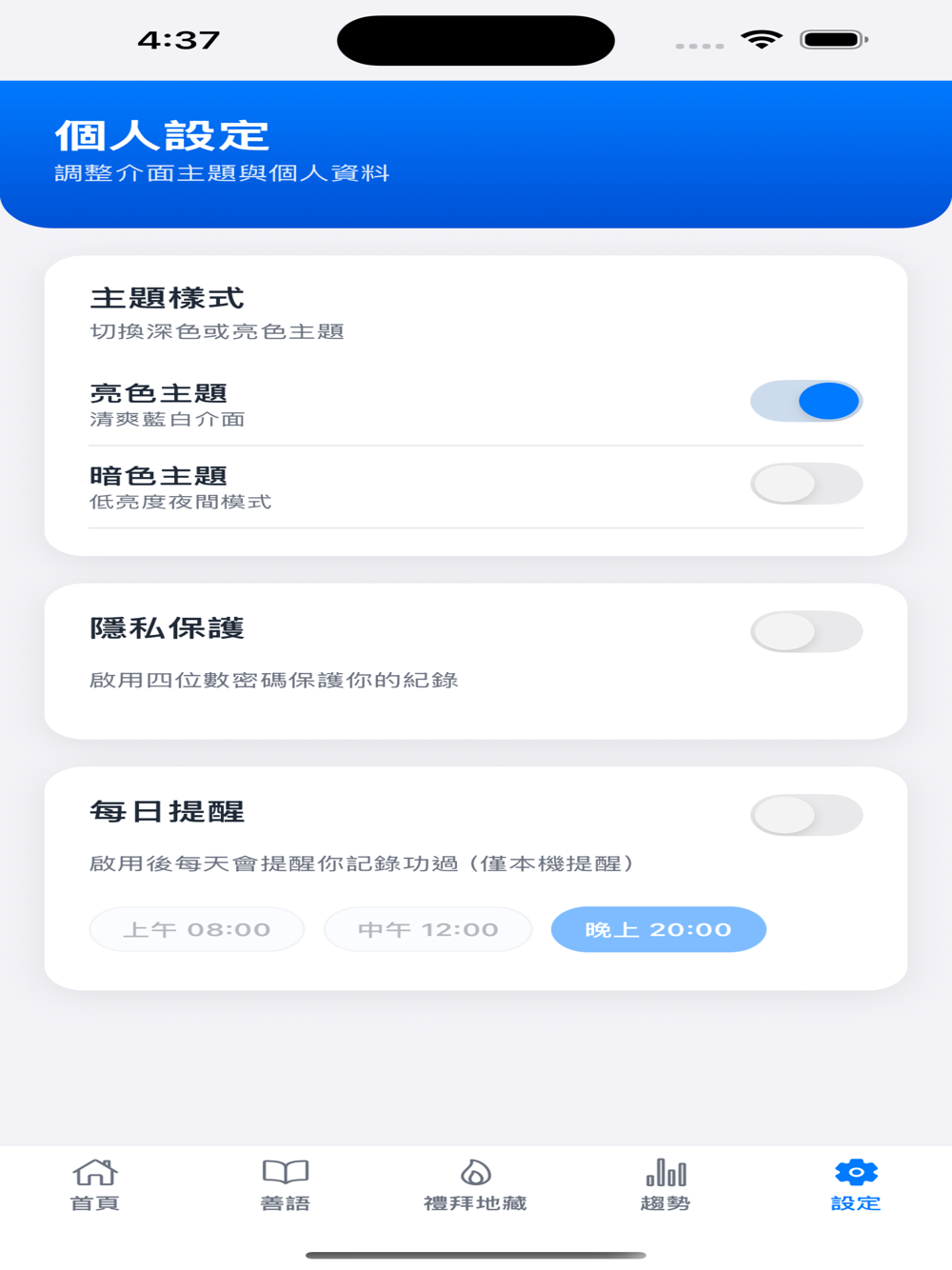 4. 本機儲存與加密保護,讓靈修筆記安心無虞。