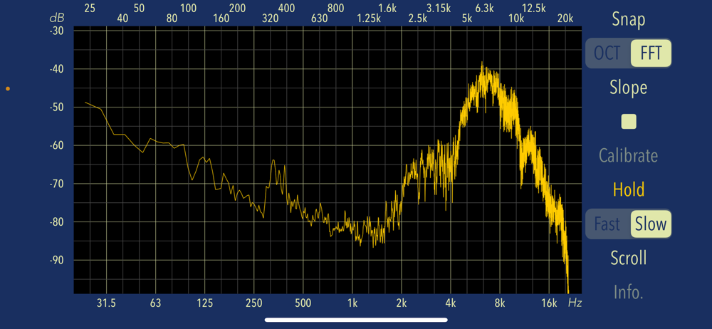 This app can measure the frequency response in 30 split band scale of 1/3 octave in real time. Also it can be displayed the FFT analysis result.