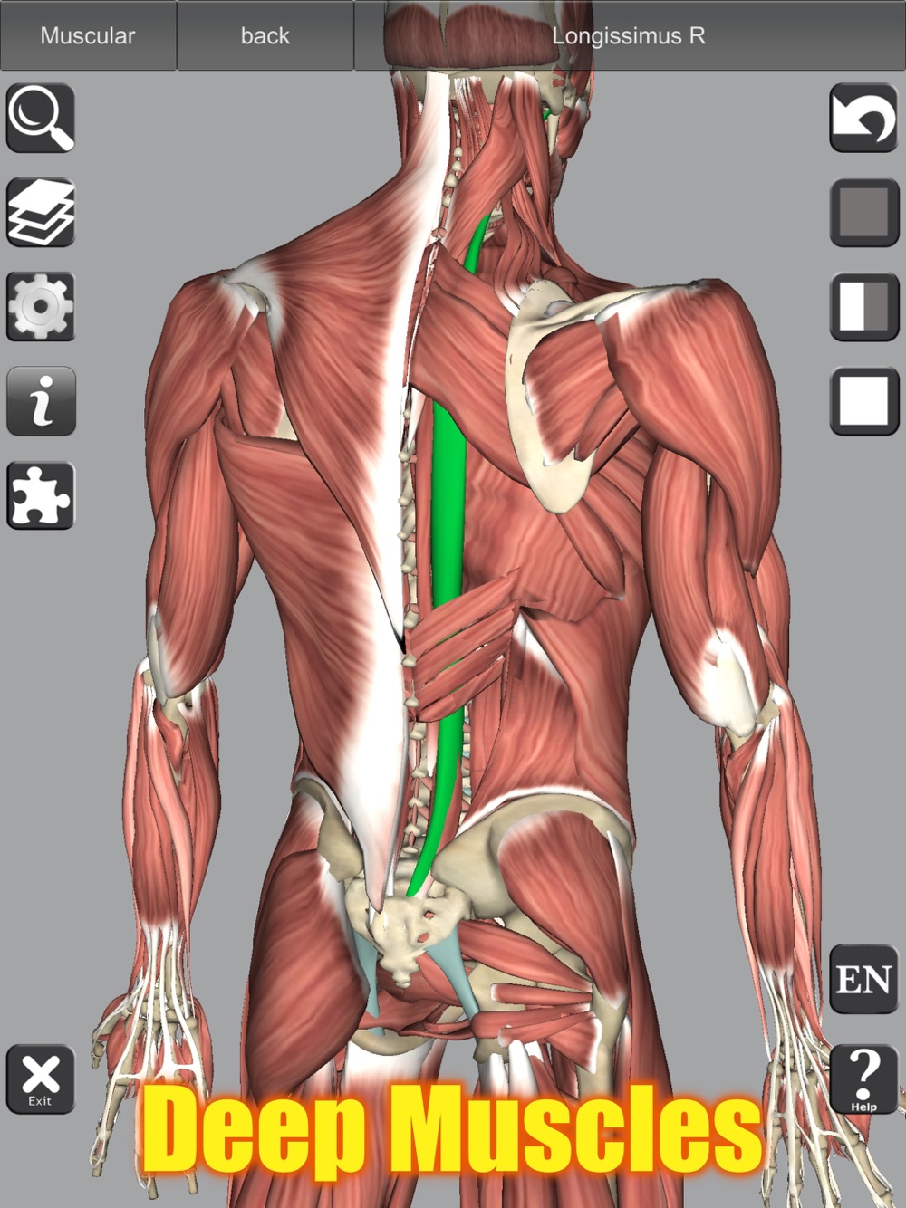 - Virtual dissection: Peel layers of muscles and reveal the anatomical structures below them.