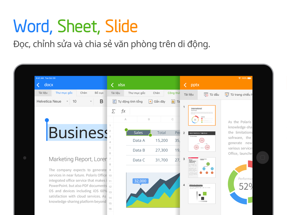 - Open, edit, save and share all kinds of office documents such as Word, Excel, Power Point, and Google Docs with one iOS app.