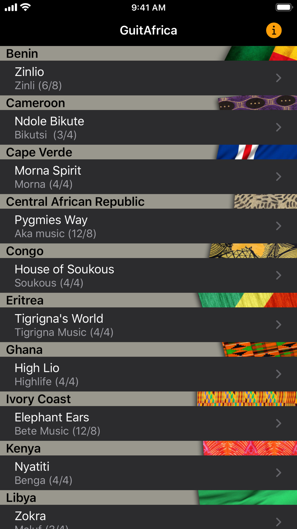 Learning any of the songs is easy. Here is an example of how you could use GuitAfrica: