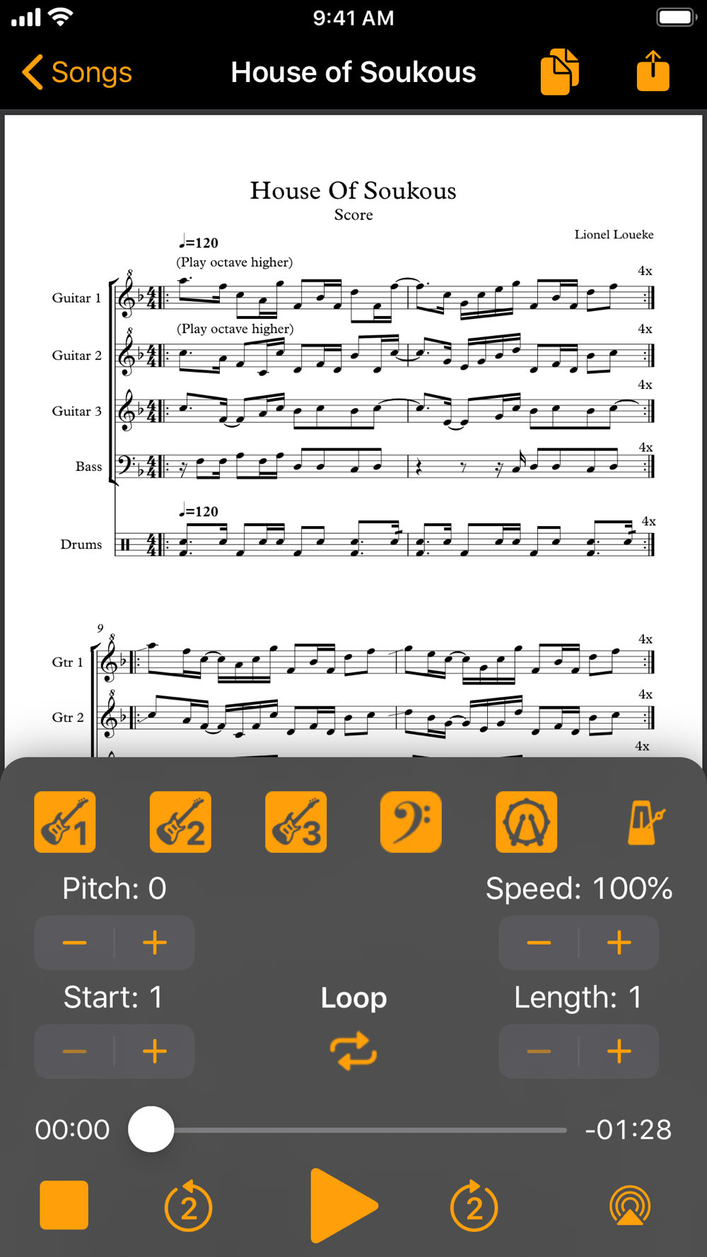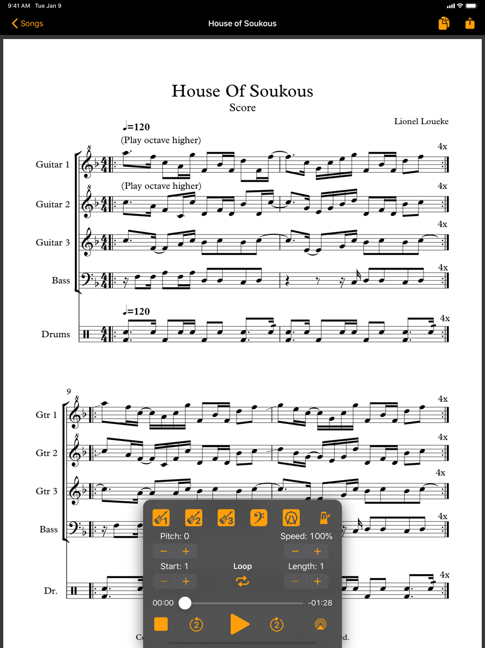 The guitar and bass parts come with both, standard music notation and tablatures so that you can learn Lionel’s exact fingerings.