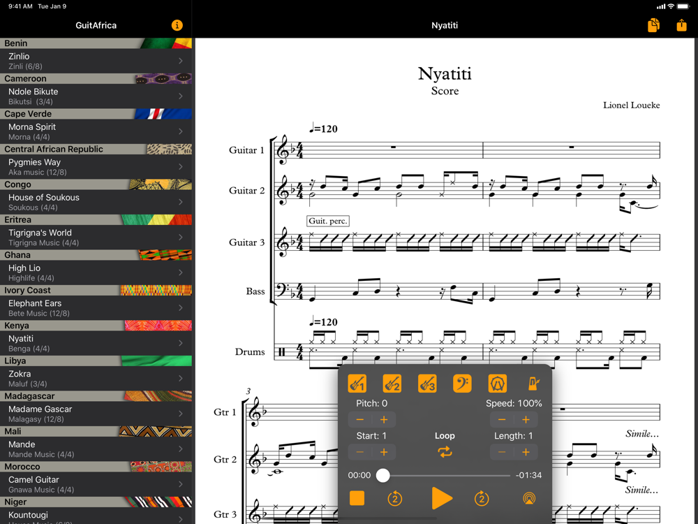 We believe that learning music should not be tedious, nor a chore - it should be fun, inspiring and fulfilling. So we invited Lionel Loueke to compose and perform 22 beautiful songs especially for GuitAfrica. They represent and are inspired by the traditional sounds of African ethnic groups spanning the entire continent.