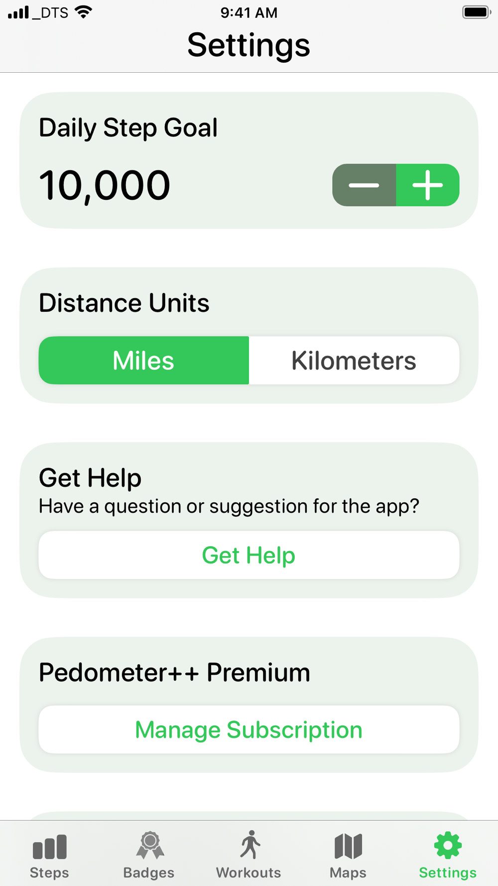 • Pedometer++ includes an optional premium subscription. This is offered on a monthly or annual basis. If you choose to purchase a subscription your payment will be charged to your iTunes account. Subscriptions will automatically renew unless canceled within 24-hours before the end of the current period. You can turn off auto-renewal at any time by going to your Account Settings on the App Store after purchase.