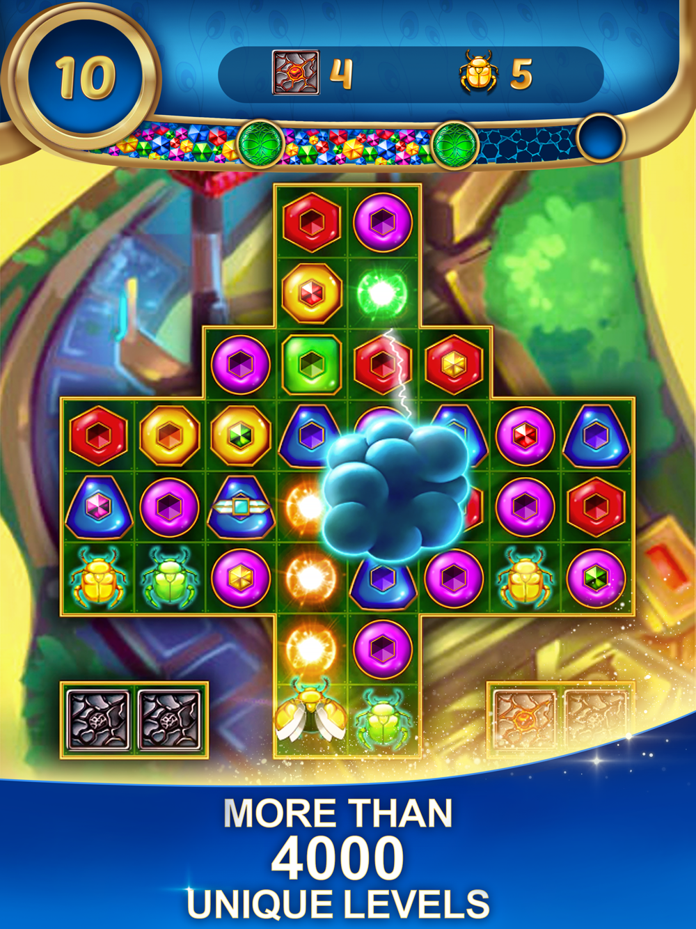 Match 3 or more colored gems, unleash the power of Magic Talismans and recover the trapped treasure chests!