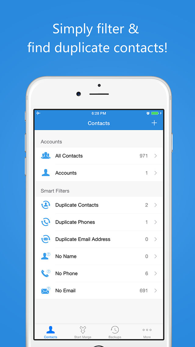 This app can help you to remove duplicate contacts in one click, also it supports Recycle Bin, you can rollback deleted contacts easily, never mind mistake remove.