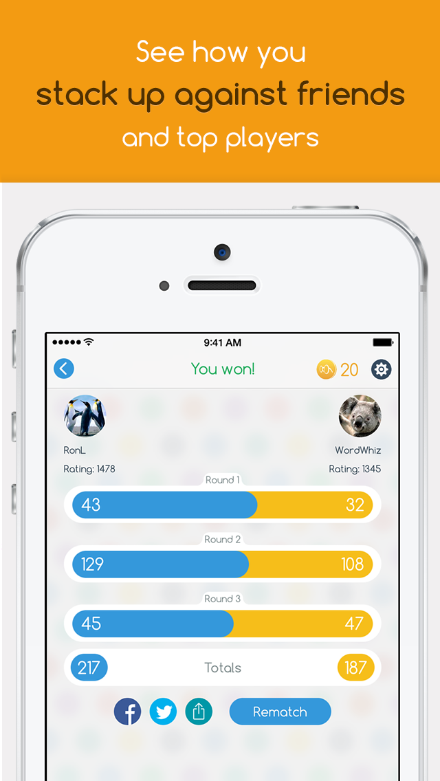 * See which of your friends are already playing, then challenge them! Or go up against random opponents across all platforms of the WordHub arena. Play on any device!