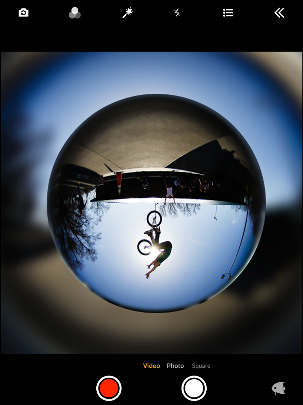 FishEye+Film filter+Particle effect(Unique for camera record app), All in one. Record creative fisheye video.