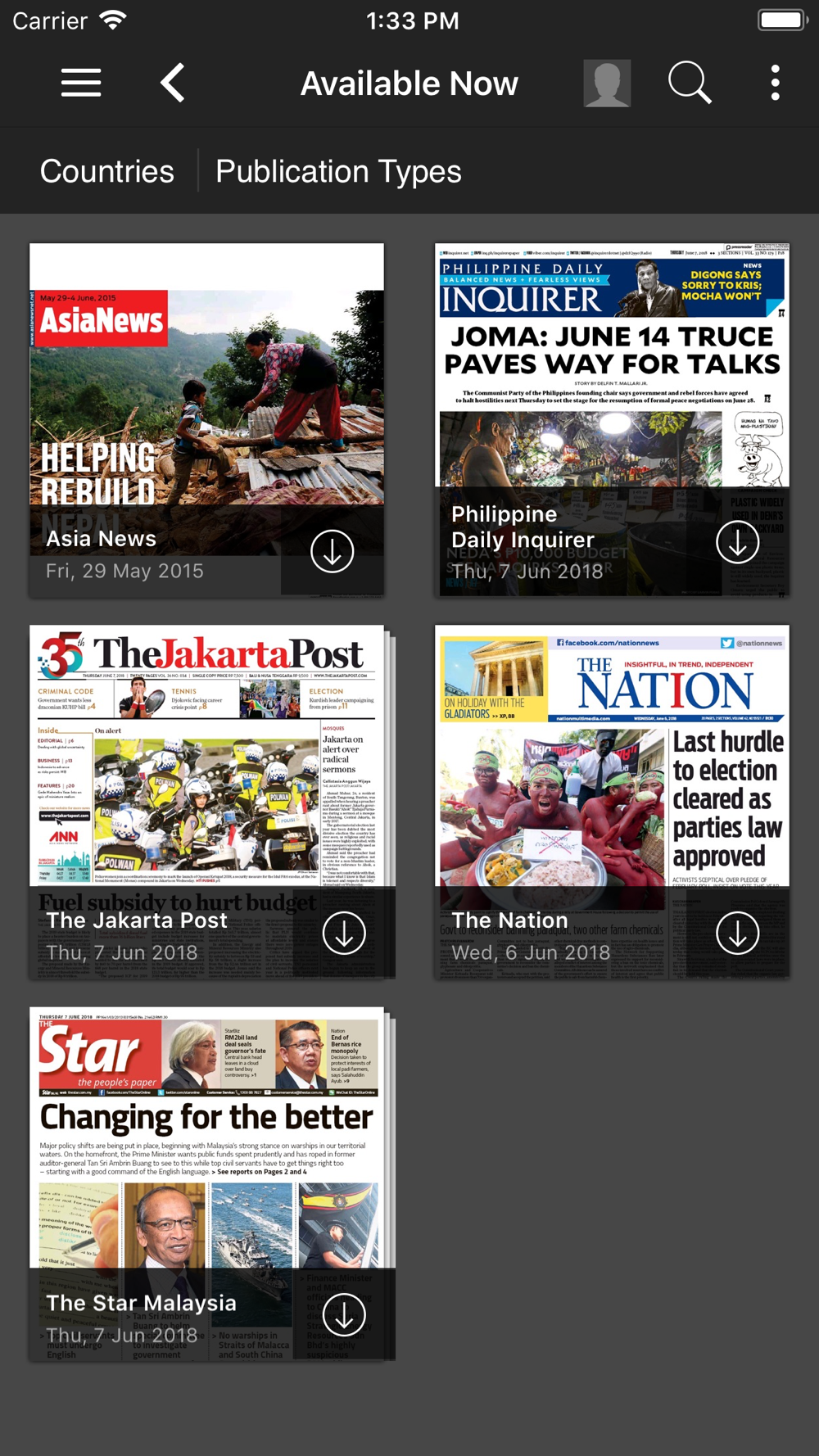 Titles included: Asia News,The Nation, Philippine Daily Inquirer, The Star Malaysia, and supplements.