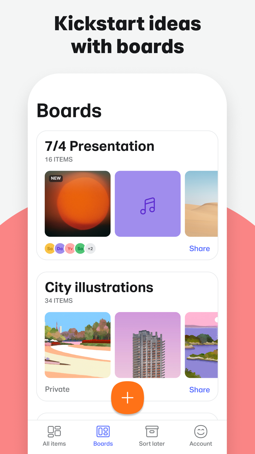 • Organize all your items into beautiful boards to visualize your ideas