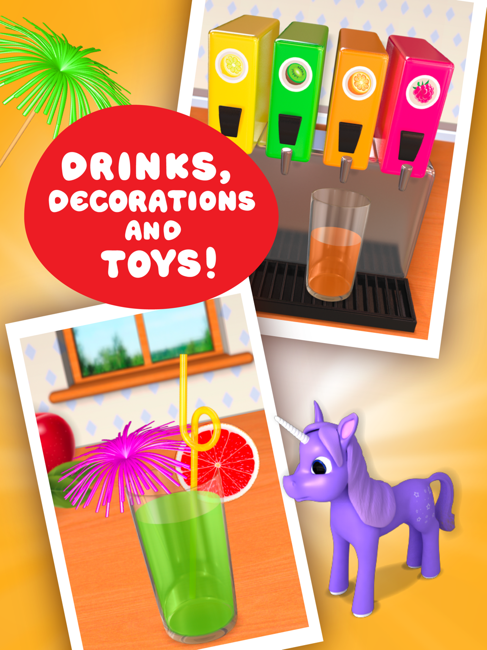 Make a tasty burger with crispy fries and refreshing drink. Eat it and then play with toys or take a challenge with a food delivery minigame.