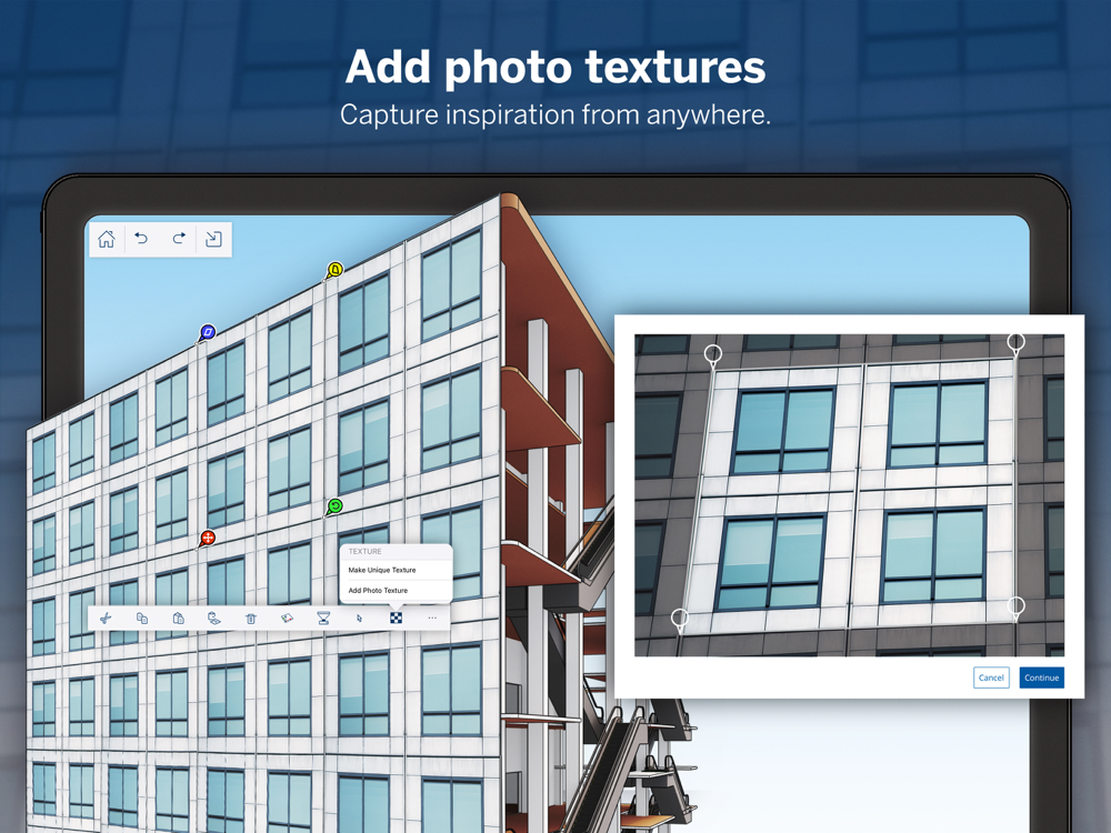 -Directly import image objects and apply photo textures from your Photos library, iOS Files App, or by taking pictures using your iPad camera.