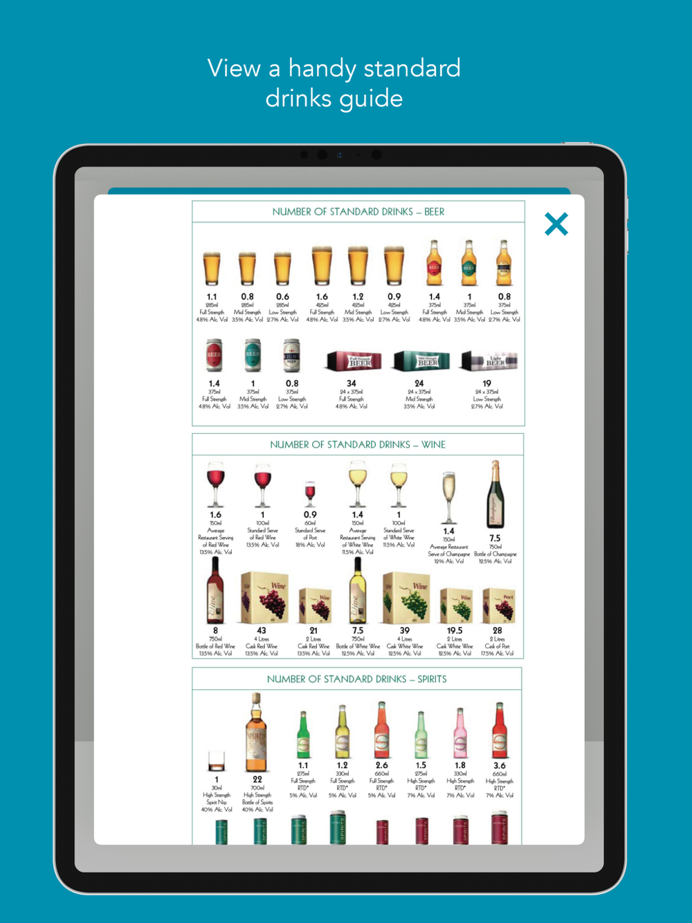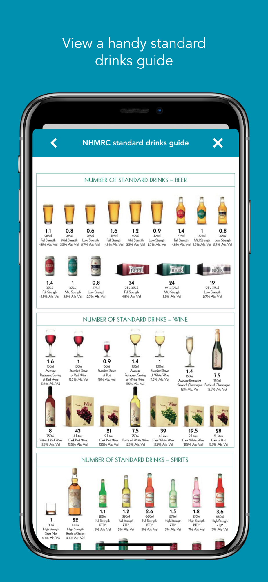 - View a handy standard drink guide