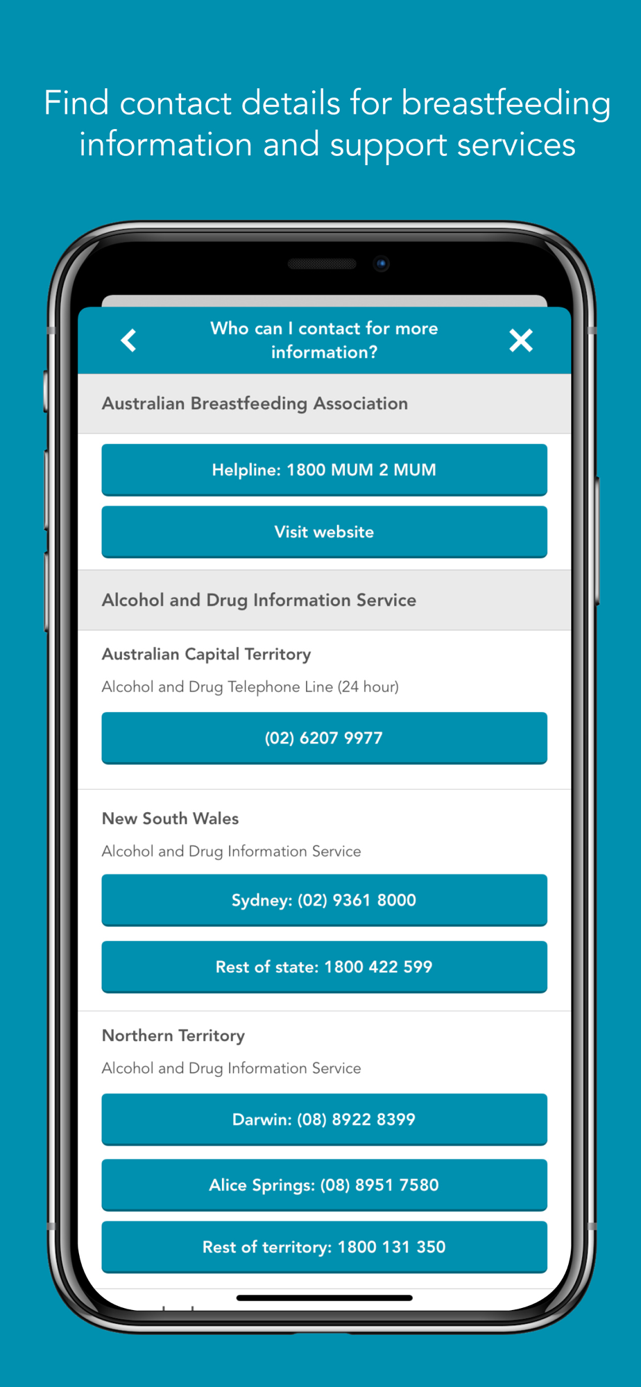 - Find contact details for breastfeeding information services