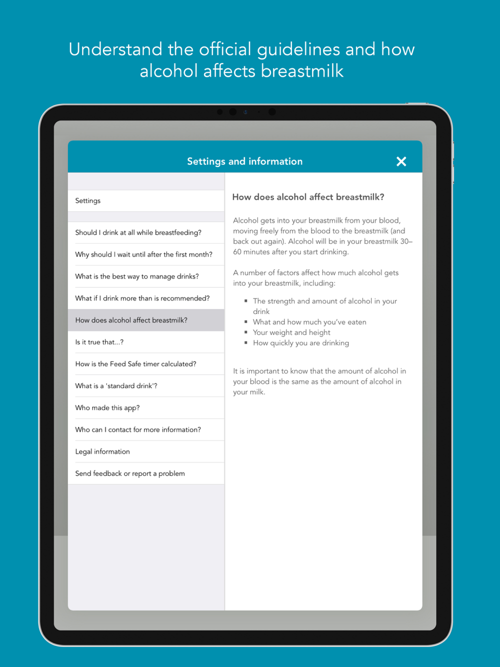 Feed Safe provides the best advice from Australia's most trusted source of breastfeeding information, the Australian Breastfeeding Association. It was developed in consultation with researchers from Curtin University, Western Australia. Feed Safe is based on up-to-date research and official Australian health recommendations.