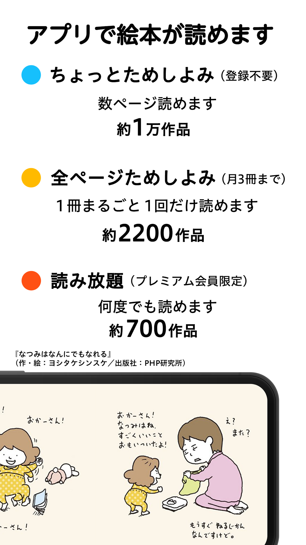 お気に入りの絵本に出会える、読める、絵本選びの決定版アプリです。