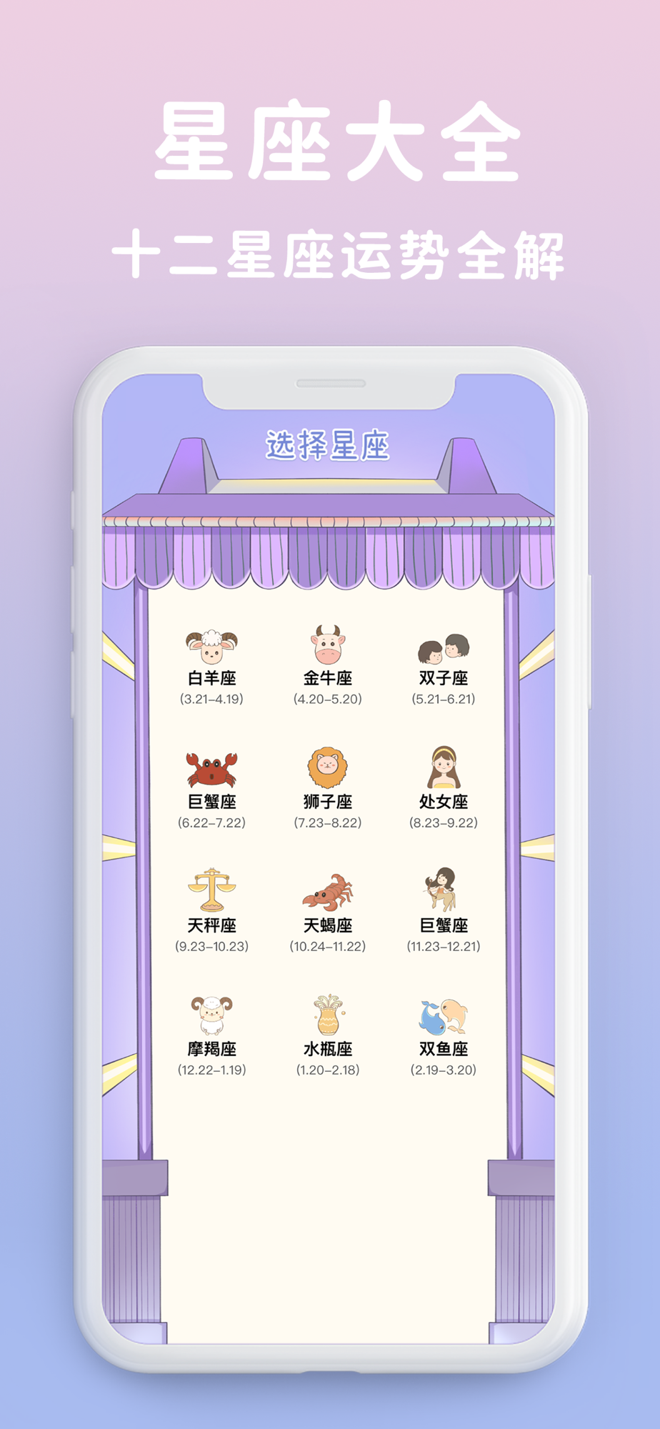 2、星座迷你宝典!分享懂你的星座特征,配对,爱情,互动,音乐,电影。
