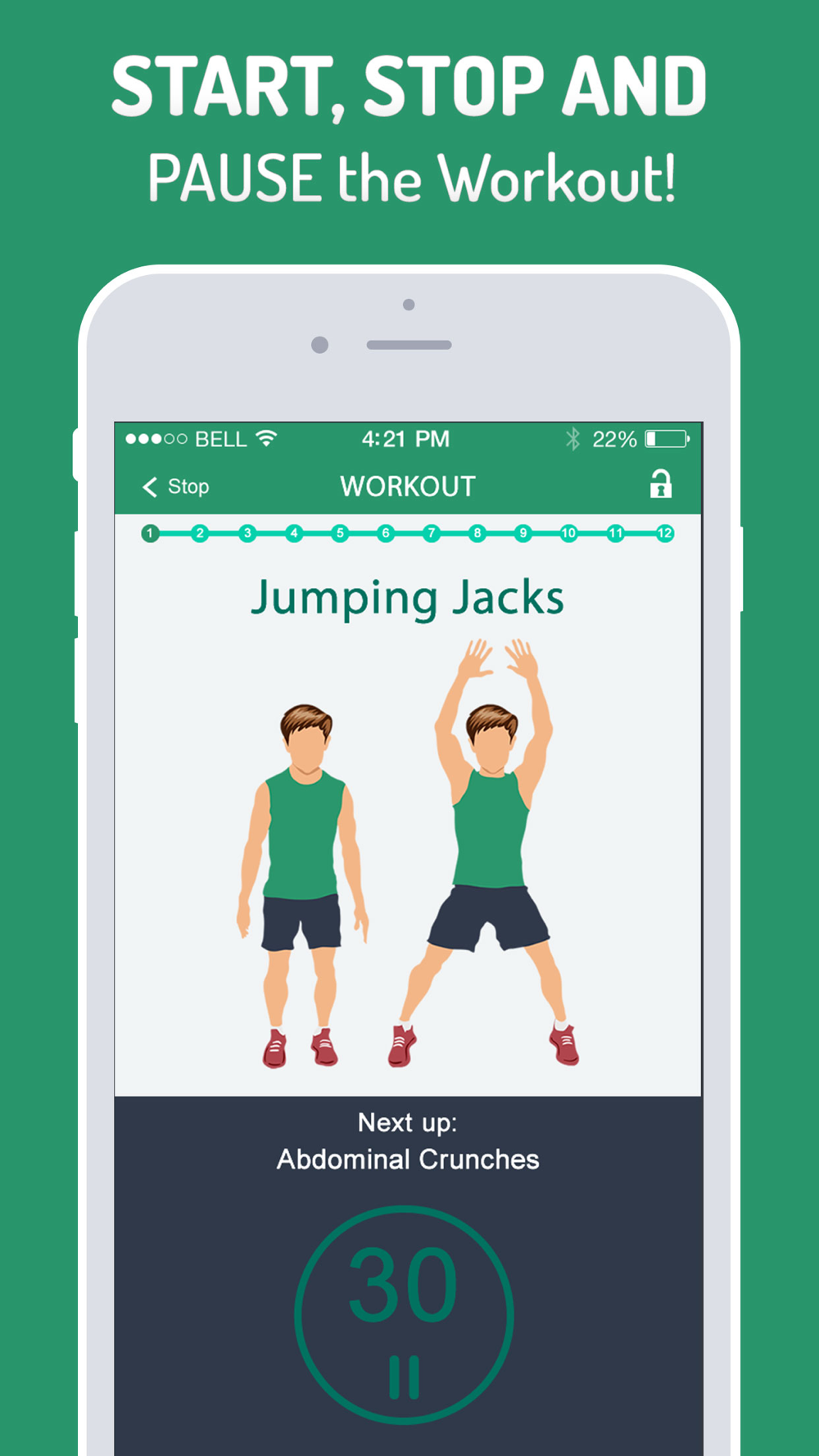 The App is based on the concept of Scientific 7 Minutes Workout method which includes 12 High-Intensity body weight exercises to be performed in rapid succession following a specific order, 30 secs per exercise with 10 secs of rest between each exercise.