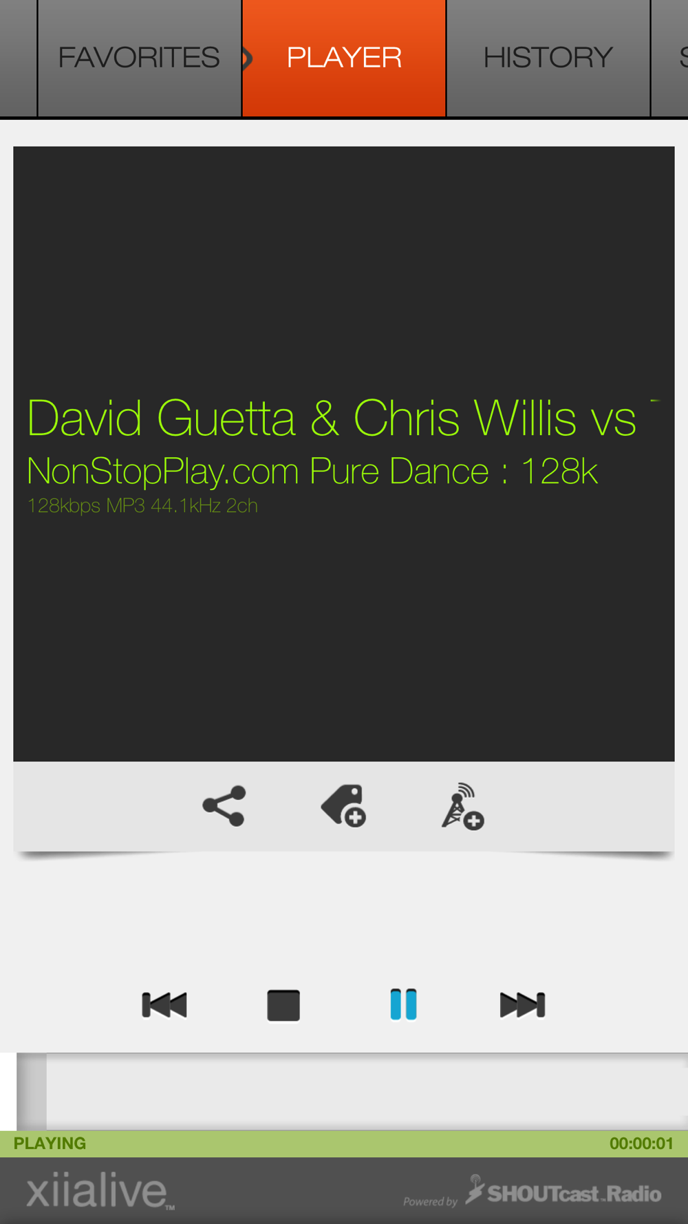 • Add any song or station to your FAVORITES or go to HISTORY to find the stations or songs that you recently played.