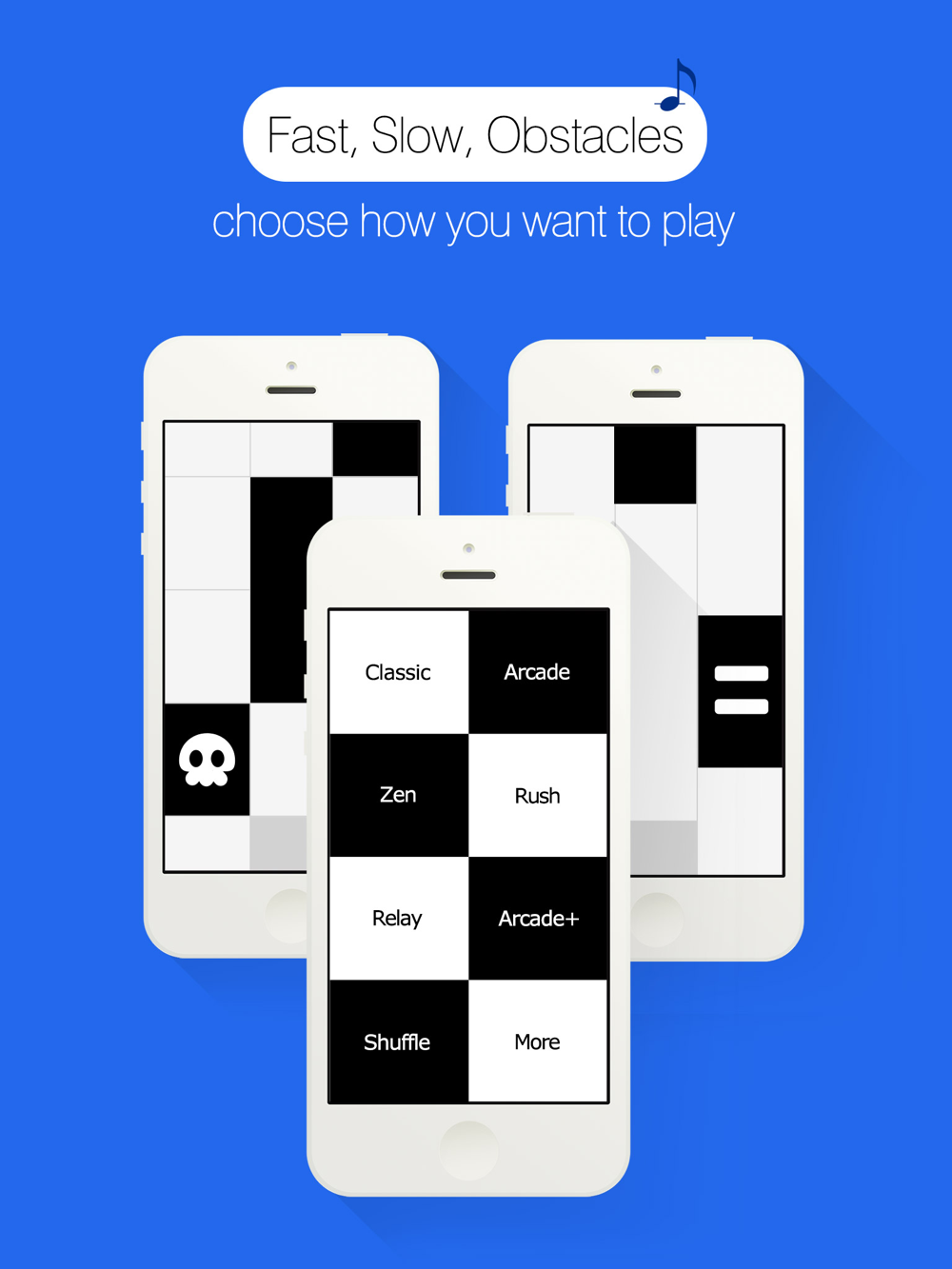 Watch your step, DON'T TOUCH ON ANY WHITE TILES! This is the core rule of this addictive piano game. Sounds easy? Give it a try, and see how well you stack up against your friends.