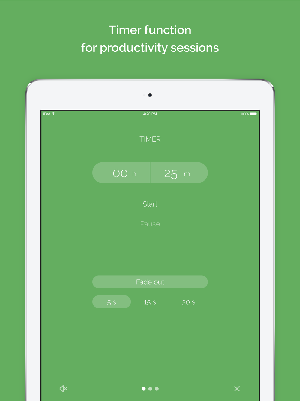 With the Timer function you can take advantage of efficient time management methods, such as the Pomodoro Technique, to be more efficient and productive while cutting out distractions and prevent burnouts. Use the built-in countdown timer function during work, study or creativity sessions or simply use it as a sleeping timer for taking a relaxed nap or while falling asleep.
