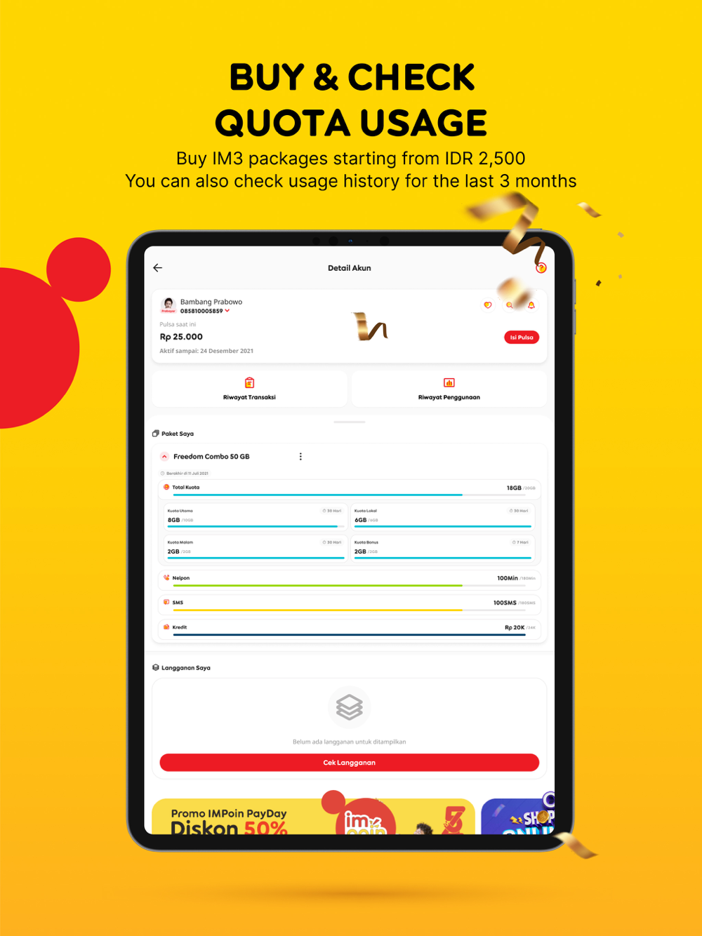 Maximize your digital lifestyle with myIM3 apps! Starting from phone credit check, quota check, buy data packages, telephone, SMS & various other exclusive promos.