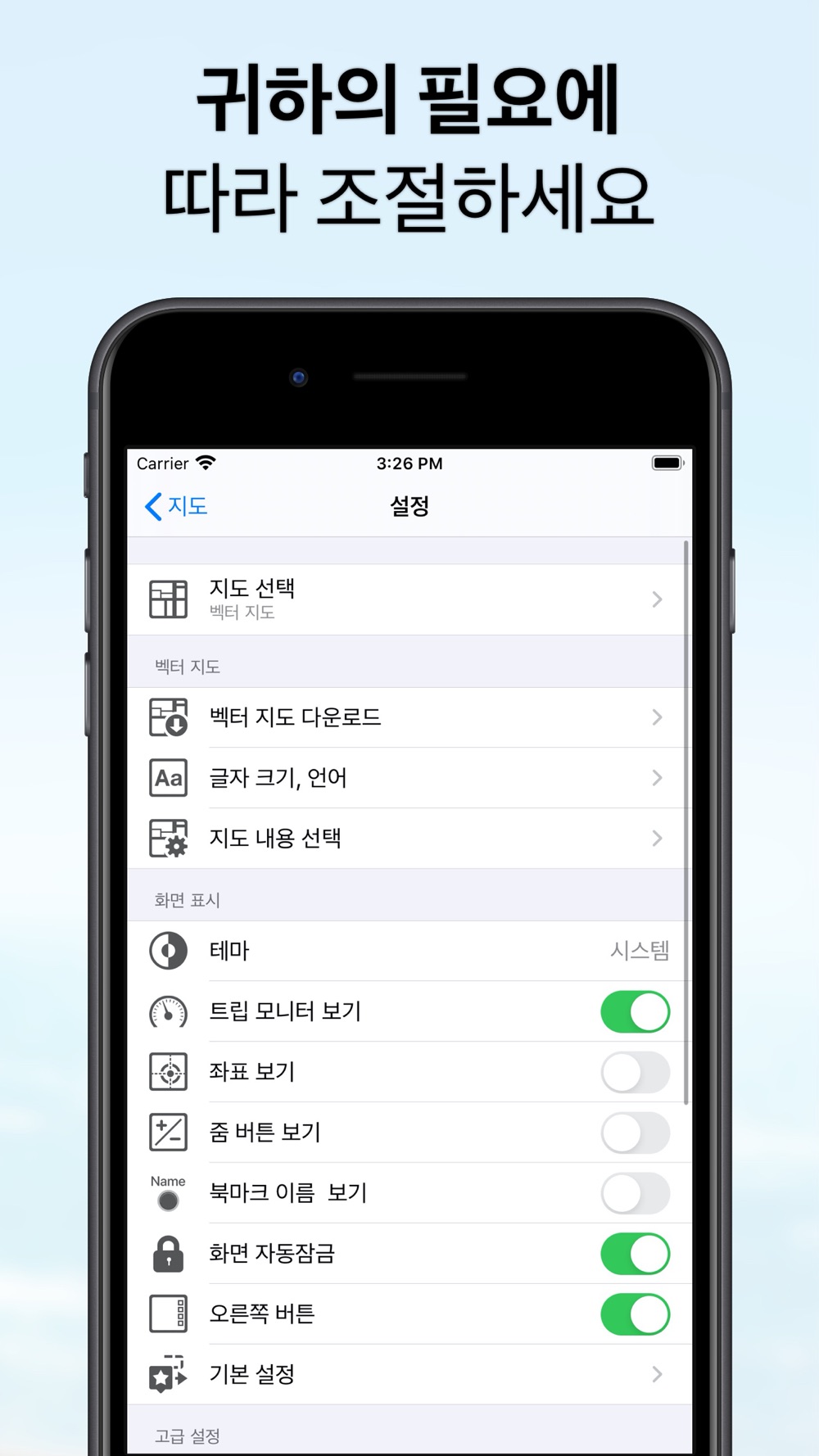• Adjustable label size – large labels on maps are extremely useful while driving.