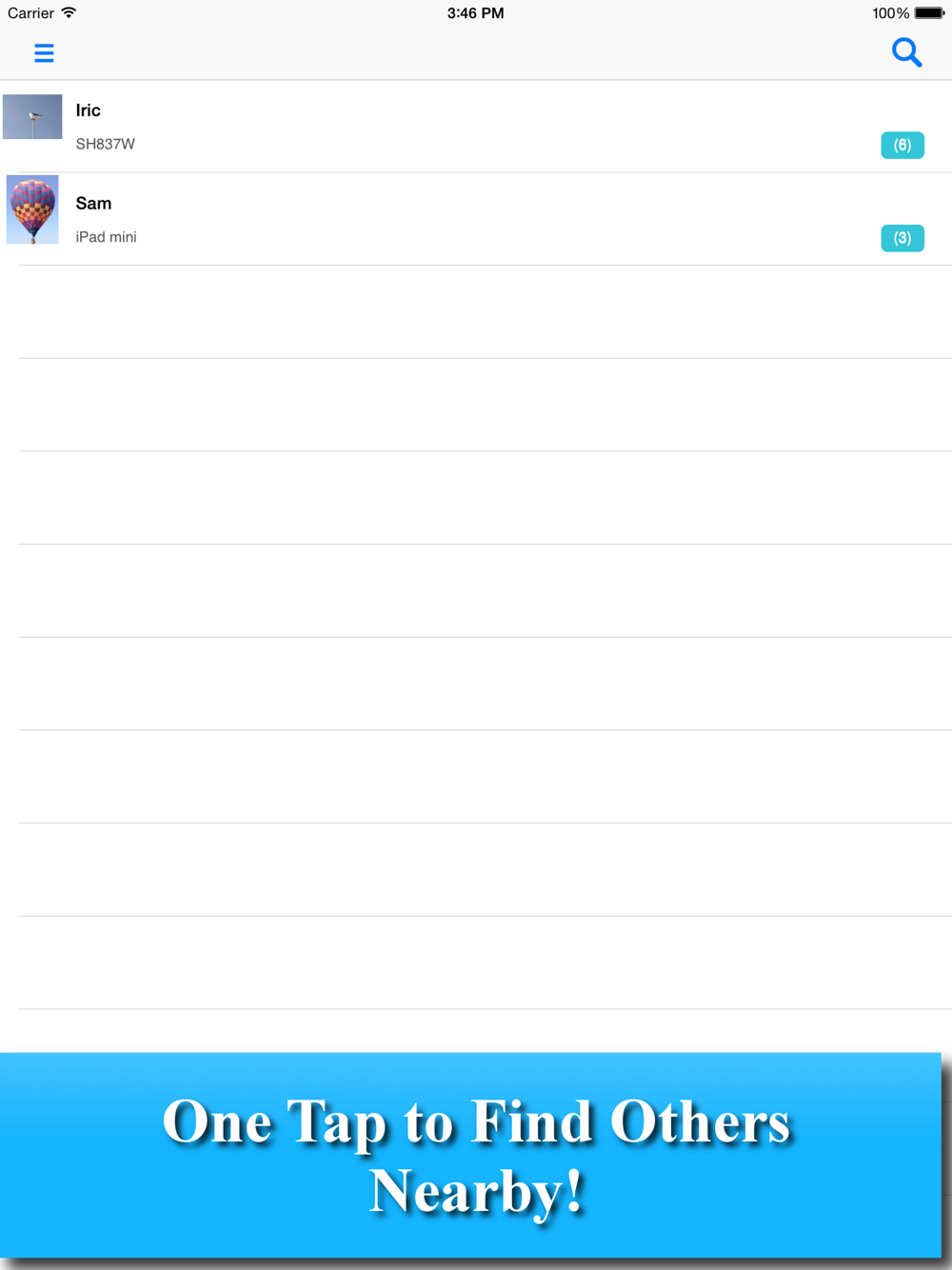 You don't need Internet, NFC, QR Code and register an account for sharing, just one tap to find and connect others you want to share.