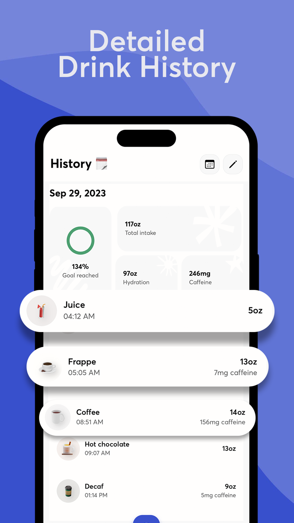 • Lap it Up: Record your sips from 20+ popular beverages.