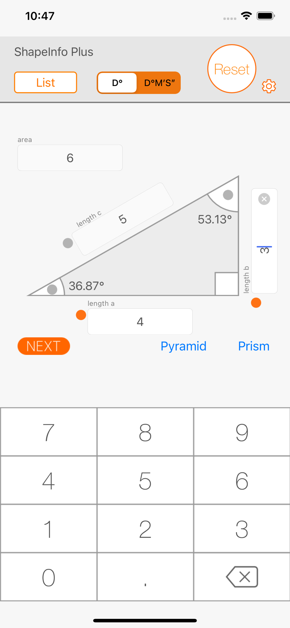The ShapeInfo is useful application for calculating shape lengths, angles and area. You can get some calculated values, lengths and angles of the shape, from choosing and entering values in the text boxes.