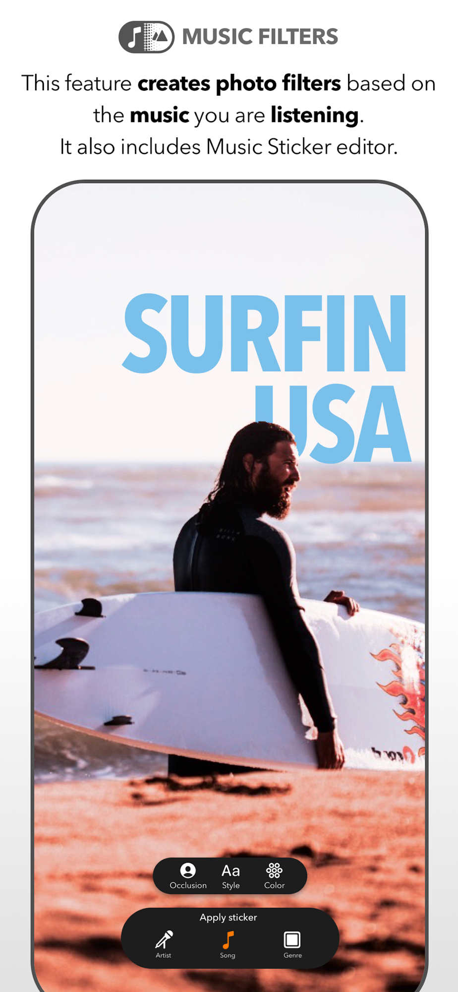 This exclusive feature creates and recommends filters based on the music you are listening to and the mood of the moment.